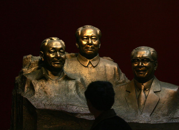 Sculpture of former Chinese leaders, from left to right, Deng Xiaoping, Mao Zedong, and Jiang Zemin, on view at the Military Museum of the Chinese People’s Revolution.