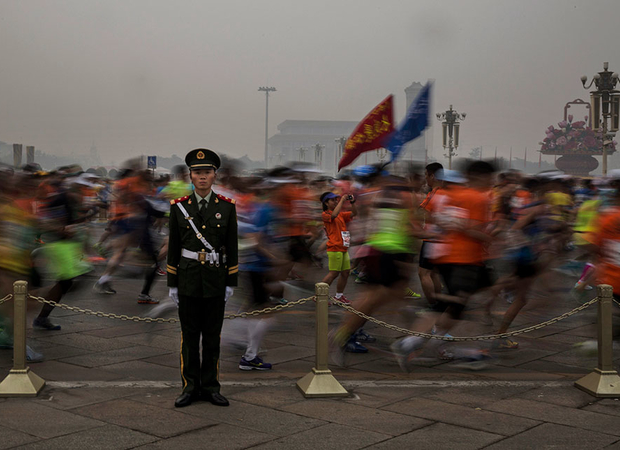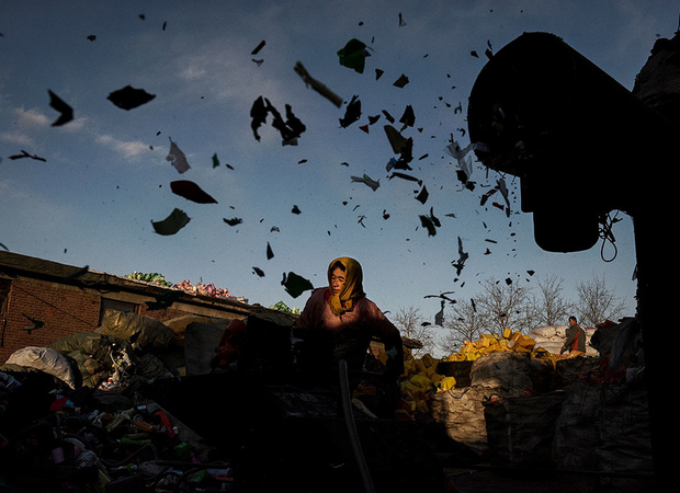 A Chinese laborer loads a machine with plastic as it is chopped into small pieces before being recycled in Dongxiaokou village on the outskirts of Beijing. The village is made up mostly of families of poor migrant workers who have come from surrounding provinces and are some of the tens of thousands of scrap peddlers surviving on recycling goods collected in China’s capital. China is the world’s biggest generator of solid waste and as the country’s population and economy continue to grow the peddlers are integral to the waste and recycling management system in major cities.