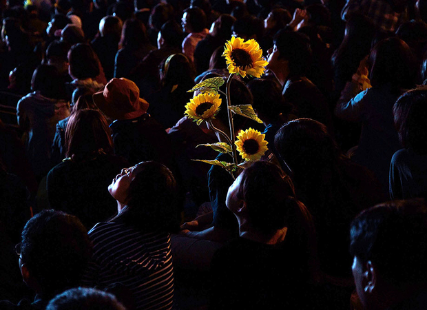 A protester holds a sunflower as over two hundred thousand people rally on March 30, 2014 in Taipei. Taiwanese protesters opposed to the contentious Trade in Services Agreement with the mainland called for a huge weekend rally filling Ketagalan Boulevard leading from the Presidential Office to the Legislative Yuan to increase pressure on President Ma Ying-jeou.