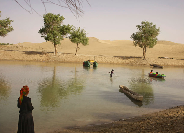 Uighurs visiting the ponds that are the remains of the once 10,000-square-kilometer Tarim Lake, 2009.