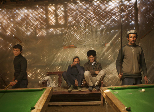 A pool hall in Darya Boye, a riverside village in the Taklamakan desert, 2008.