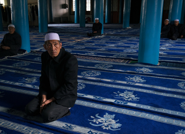 Waiting for prayer to begin inside the Najiahu Mosque.