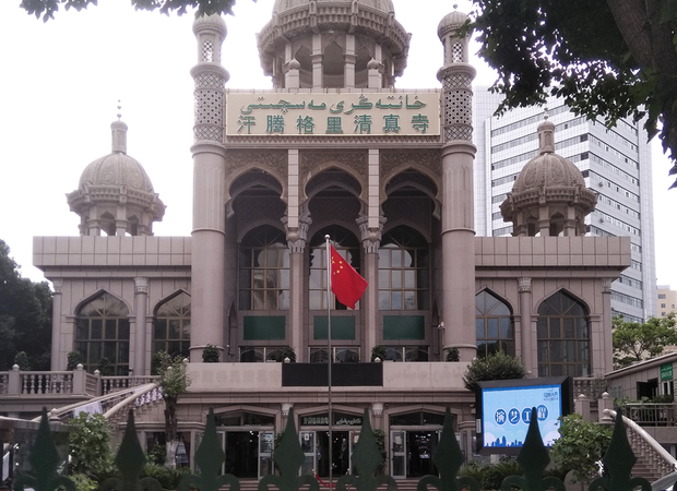 The deserted Khantängri Mosque, with a P.R.C. flag erected since the author’s last visit in 2016, in Nanmen, Urumqi, 2018.