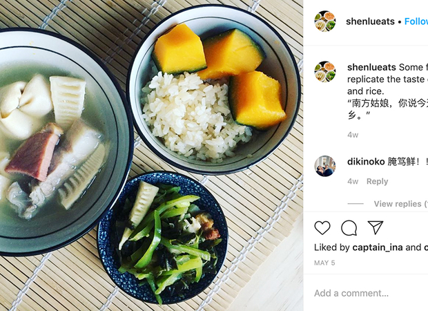 Yanduxian (soup made with spring bamboo shoots, cured and fresh pork, and knots of pressed bean curd), stir-fried chili pepper, bamboo shoots and pickled mustard, rice with steamed Kabocha squash.