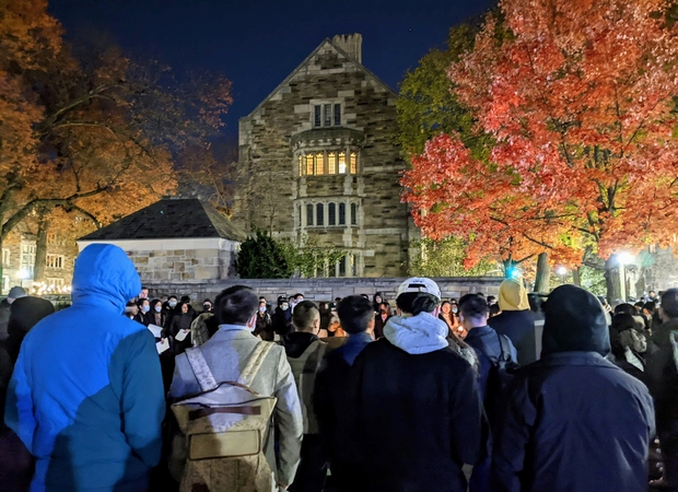 A crowd gathers for a vigil at Yale University in support of demonstrations in China, November 28, 2022