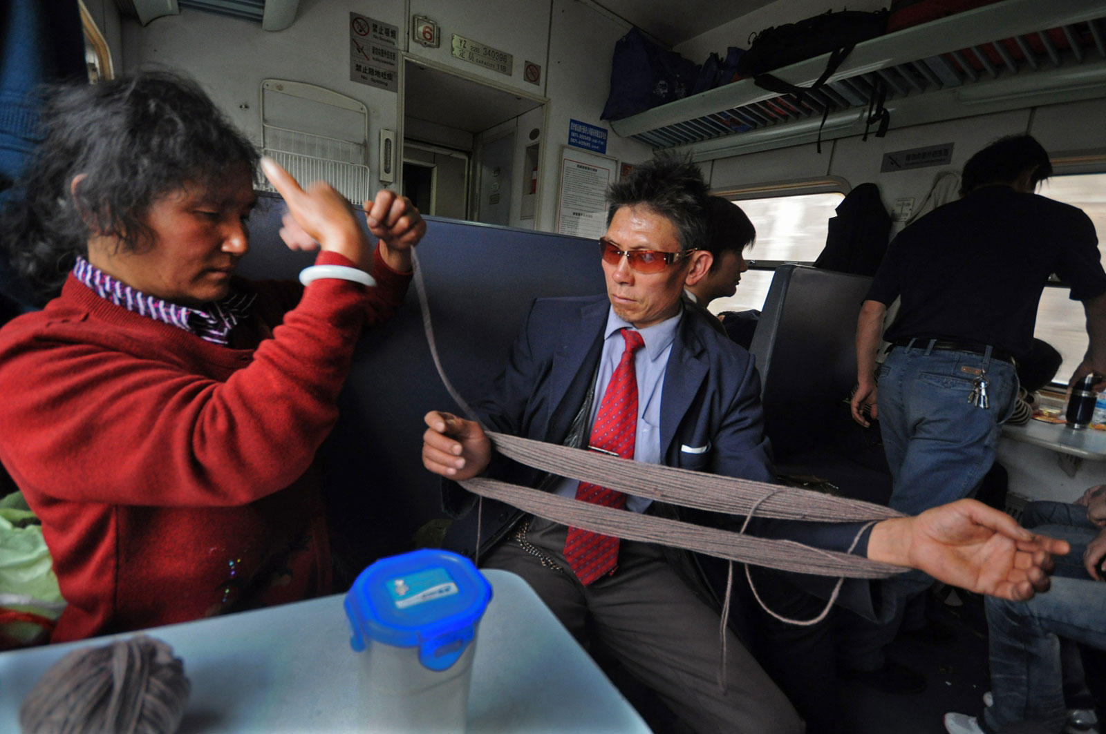 Qian, a hotel electrician in Wuxi, Jiangsu province, has spent eight years photographing train passengers on the country’s iconic “green-skinned” trains, so called for their green exterior paint. These old iron roosters, which began to hit China’s rails in the 1950s, are disappearing as high-speed trains replace them.