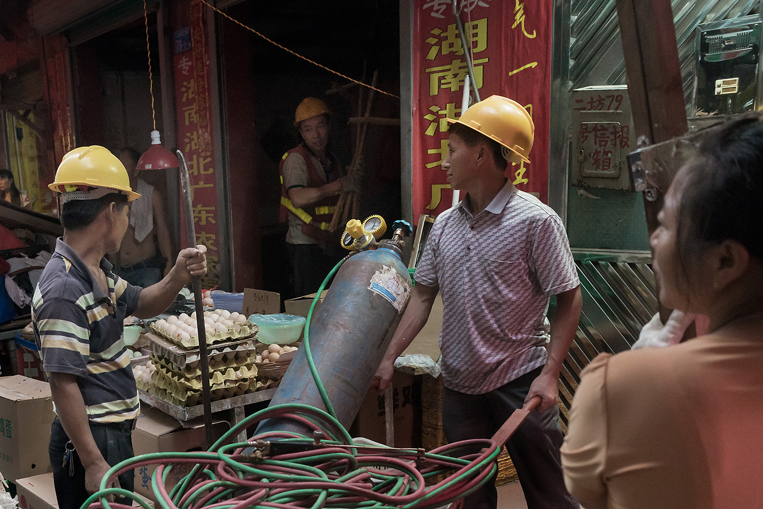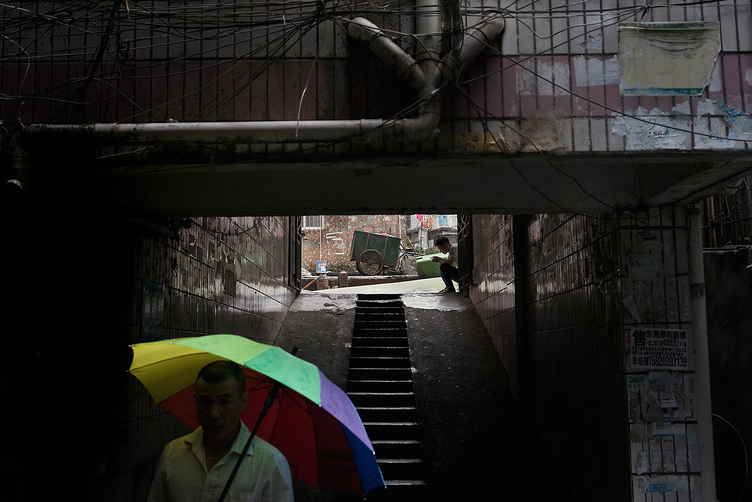 Start with Cannery Row, then jerry-rig it to accommodate half the population of Iceland, and you’re close to Baishizhou. A tangle of damp alleyways opens at odd intervals onto wider avenues of frenzied commerce—fruit carts, shoe repair, blind massage, hot pot, pig’s feet on rice, coal-roasted sweet potato, fortune tellers, handymen for hire, smartphone engravers, karaoke parlors, smoke shops, love hotels, furniture dealers, street-side lamb butchers, elementary schools, mahjong rooms, communal laundry wells, open-air billiard halls, and a vast number of hair salons where customers can get a head massage, a cut, and a wash for about four dollars. All of it hustles by under a sun-blocking canopy of braided telephone wires.