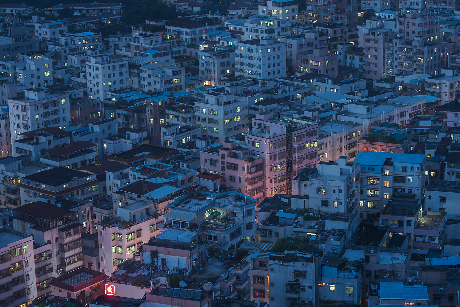 But there are irregularities in the sprawl, and millions of Shenzhen’s inhabitants live in them. These are the chengzhongcun, literally “villages in the middle of the city,” often translated as “urban villages.” These “villages” usually take the form of a huddled warren of nine- and 10-story “handshake buildings”—so called because they’re built so close together that residents can stick an arm out the window for a handshake with a neighbor. The buildings’ lack of elevators limit their heights, and, when seen from above, urban villages look like stunted patches on the greater cityscape, undergrowth in a forest of high-rises.
