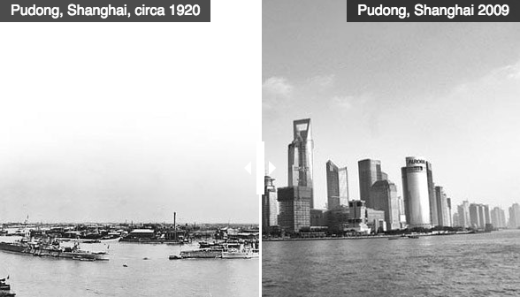 When the original photo of what is now Pudong was taken in 1920, Shanghai was divided into foreign concessions with a combined population of about 900,000. Today, it is the largest city in China, and one of the largest cities in the world, with a population of about 24 million.