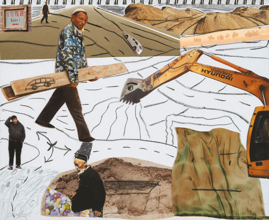 It would be reductionist to give these collages a single interpretation, but one comes away with an overwhelming sense of Drake’s participants grabbing the agency she has given them to create images that reorder, soften, or explain the rigidly authoritarian society in which they live. This is a form of resistance, but not the overt kind that makes headlines. It is the quiet reinterpretation of daily life that often is out of the Uighurs’ control.
