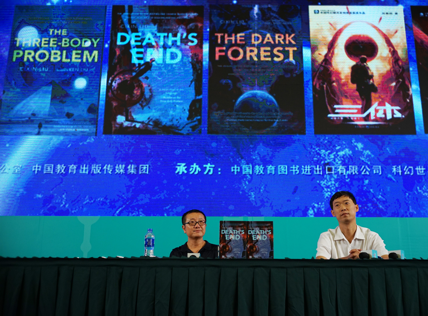 Liu Cixin and Wang Jiankang are two of the “three generals” of Chinese science fiction, along with Han Song, whose day job is covering politics for the state-owned news service Xinhua. All three have been writing since the 1980s. (Sometimes a fourth, He Xi, is added, to make it the “four big names.”) The genre received wider recognition in China and abroad with the critical and commercial success in the mid-2000s of Liu Cixin’s trilogy, Remembrance of Earth’s Past, commonly known as the Three-Body Trilogy. Some four million copies have been sold, a long-delayed film is set to follow next year, and in Beijing a group of sci-fi writers and I saw a theatrical adaptation, with floating orbs and futuristic special effects. The books were translated into English starting in 2014, and the first volume (The Three-Body Problem) won a 2015 Hugo Award for best science fiction novel.