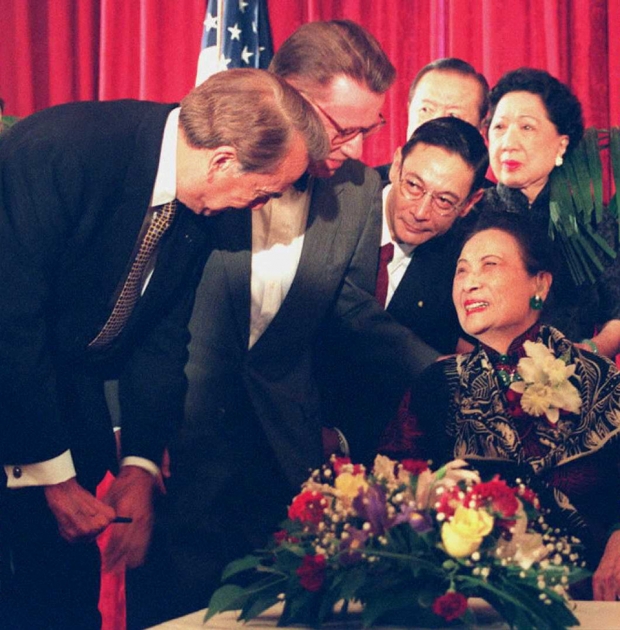The concluding chapters of Pakula’s book on the Chiangs in (and out) of Taiwan contain material that will be new to many readers, though they are chronologically nearer to our own time. In those chapters one can see how Mme Chiang maintained a certain aura owing to her husband’s lingering prestige within the Nationalist Party, and how she also kept up with influential friends and contacts in the United States. (One unrehearsed and touching example of such a meeting, between Mme Chiang and Beverly Sills, is quoted at some length by Pakula.) But most of the old links with China were severed, and after her husband’s death in 1975 Madame lived mainly in the United States, with only occasional visits to Taiwan.