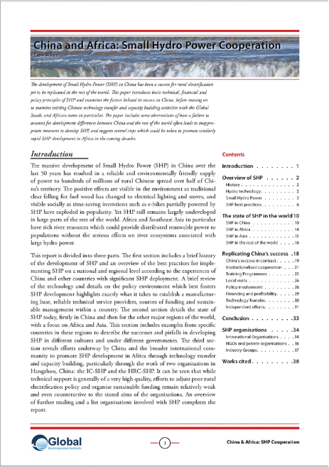 The development of Small Hydro Power (SHP) in China has been a success for rural electrification yet to be replicated in the rest of the world. This paper introduces basic technical, financial, and policy principles of SHP and examines the factors behind its success in China, before moving on to...