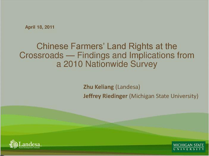 Chinese Farmers’ Land Rights at the Crossroads—Findings from 2010 Nationwide Survey
