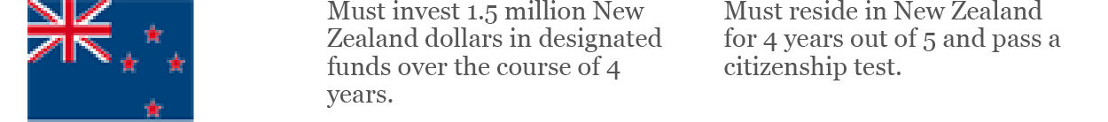 Late last year the U.K.'s Tier 1 (Investor) visa requirement was increased to £2 million. This graphic has been updated to reflect that change. The link to the New Zealand Investor Visa has been updated for clarification.