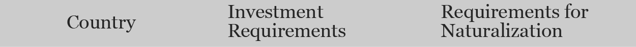 Minimum Investment Required to Immigrate, by Country
