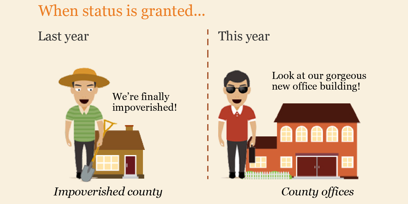 Conflicts arise as counties across the nation compete to be officially classed as "impoverished."