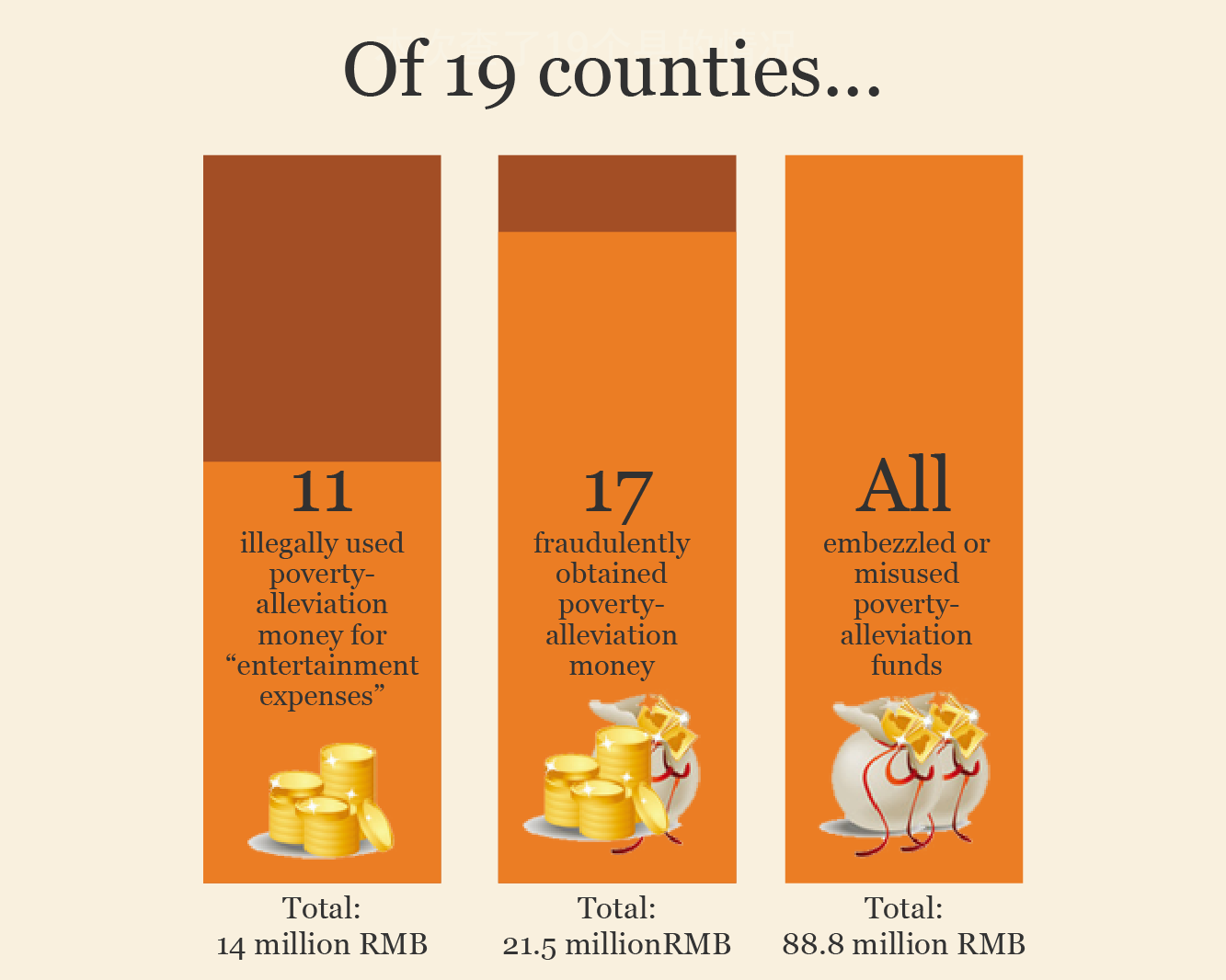 According to reports from the National Audit Office, counties designated as "impoverished" haven't made good use of government funding. In all 19 counties surveyed, funds originally earmarked for poverty alleviation were misappropriated or embezzled.