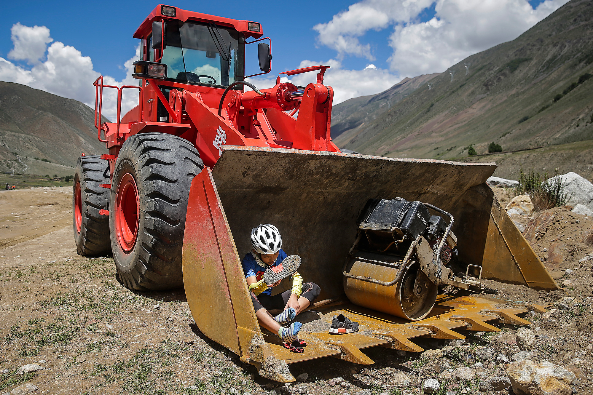 When Wang first learned of Chao and Runxi’s plans, he was interested primarily in the physical difficulty of the undertaking. He’d heard from a relative that only about 10 percent of people who attempt to get from Chengdu to Lhasa by bike make it without hitching a ride for at least part of the route. He also looked forward to getting to know Chao and Runxi as he photographed their journey. But while he and Chao became close, Runxi remained distant. Wang says the child “probably had a lot of bottled-up rebellion in him, and he took it out on me.” The father and son had what Wang describes as an “absolute leader/follower relationship.” On difficult parts of the trip, Runxi would sometimes cry and ask to stop biking. His father responded by simply biking away, leaving him to fend for himself.