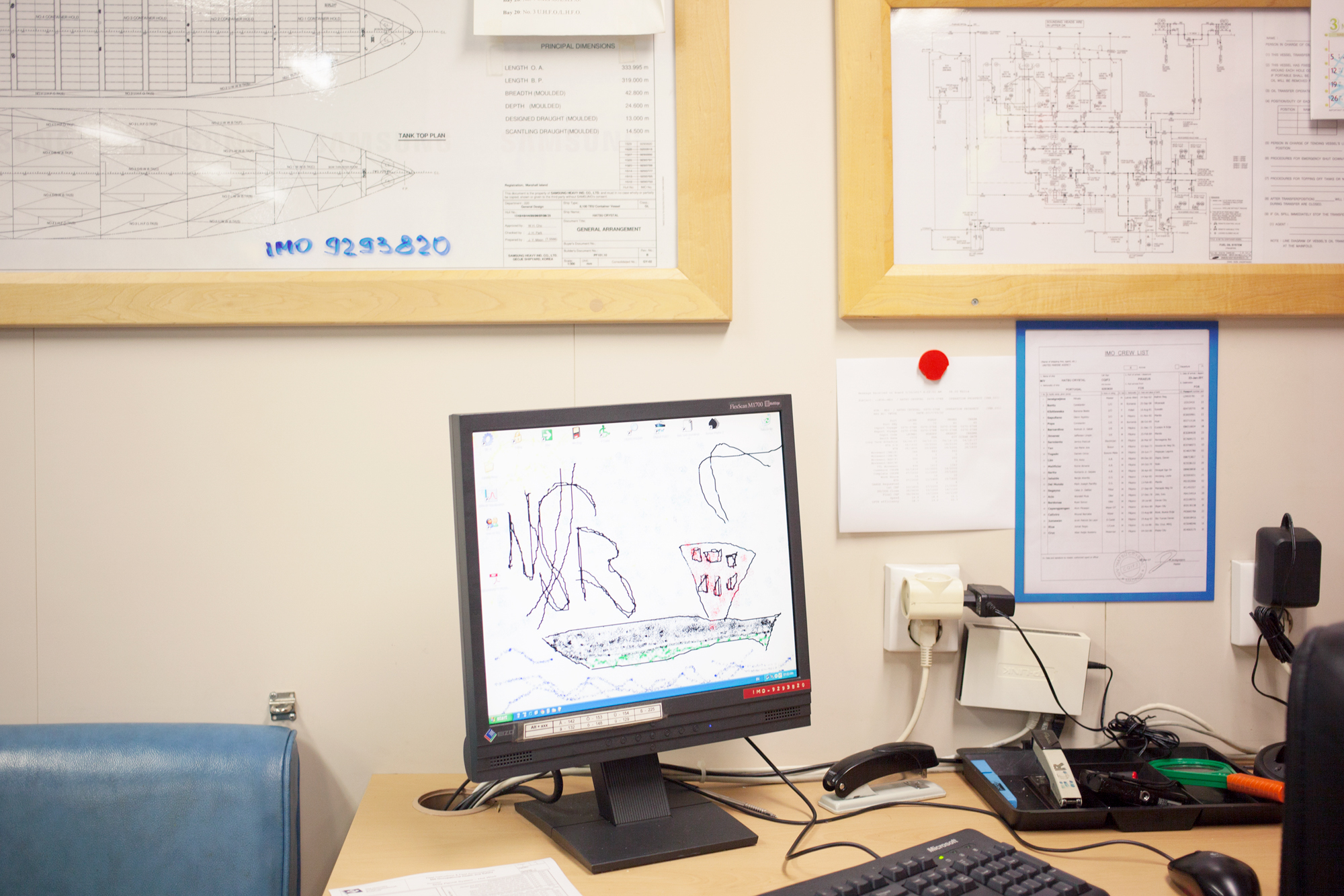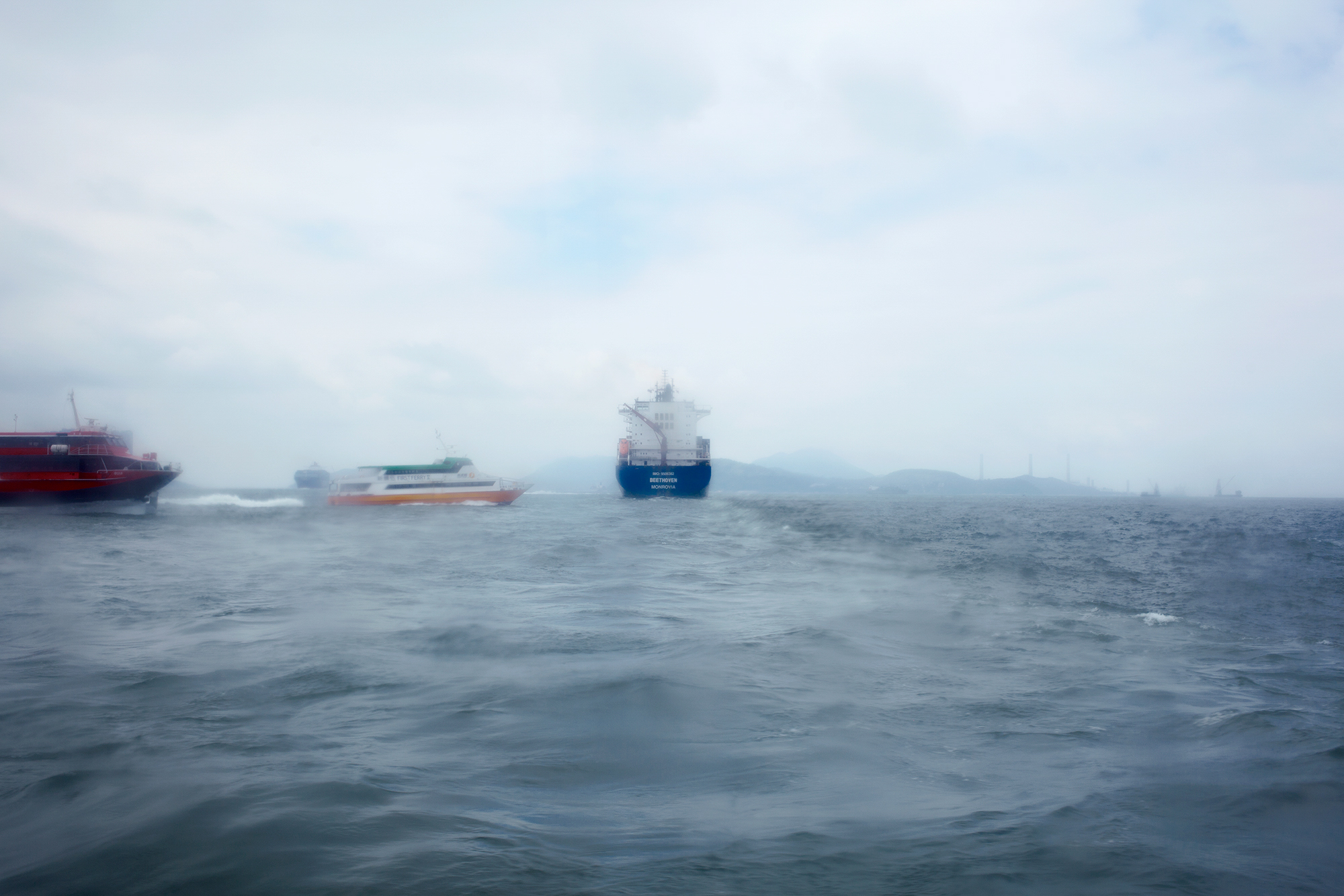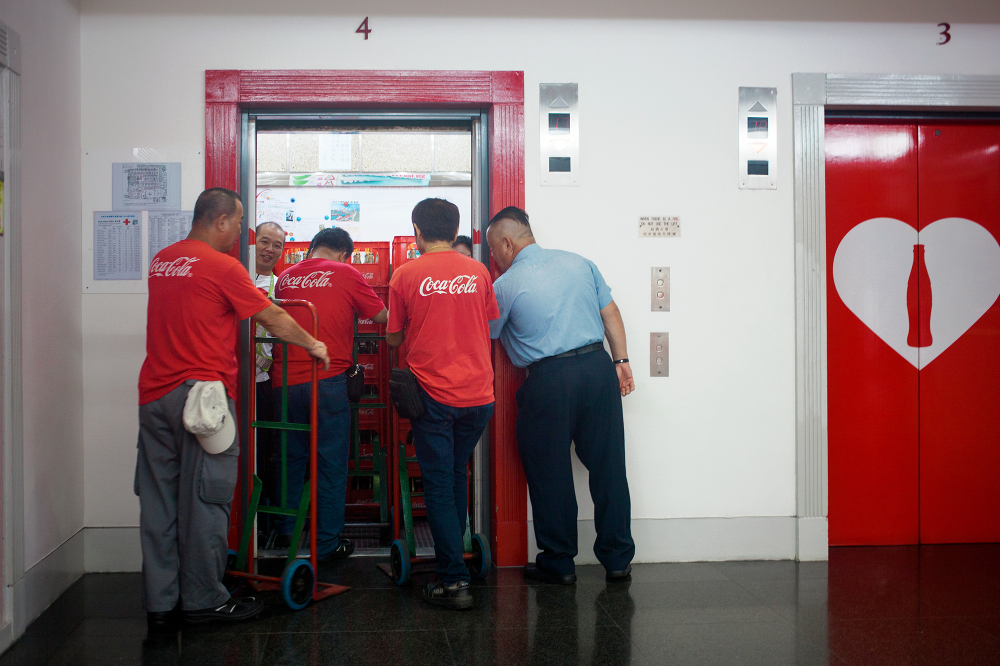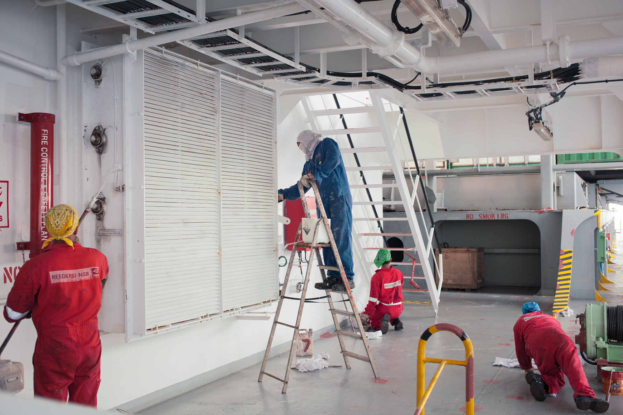 Russian-Danish photographer Mari Bastashevski set out to capture this system over a two-year journey that took her to the Port of Colombo in Sri Lanka, a Chinese-made container ship crossing the Pacific Ocean, a bottling plant in Hong Kong, a customs house in Piraeus, Greece, and elsewhere. Bastashevski’s project, she writes, “navigates through the complex, politically ambiguous, and often violent culture of logistics by which our common household products reach us.” And yet, her austere, frequently alienating images contain small moments of surprising humanity, even serenity. A Russian joins Filipino mechanics for a smoke; printing-house workers in Shenzhen beam during a break from their toil; Chinese and California state officials join together to gaze from the prow of a boat in San Pedro. Both beautiful and foreboding, Bastashevski’s work unmasks a world that each of us—perhaps without thinking or knowing—have already built together.