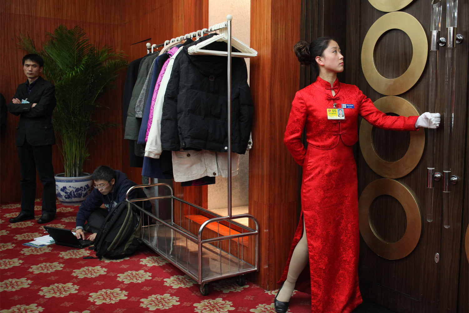 While working on assignment for The Beijing News, Meng Han covered the two conclaves year after year. She found her camera drawn to the supporting roles played by the women at the meetings: dancing in the opening ceremonies, pouring tea, entertaining guests, and shepherding delegates through the cavernous corridors of the Great Hall of the People.