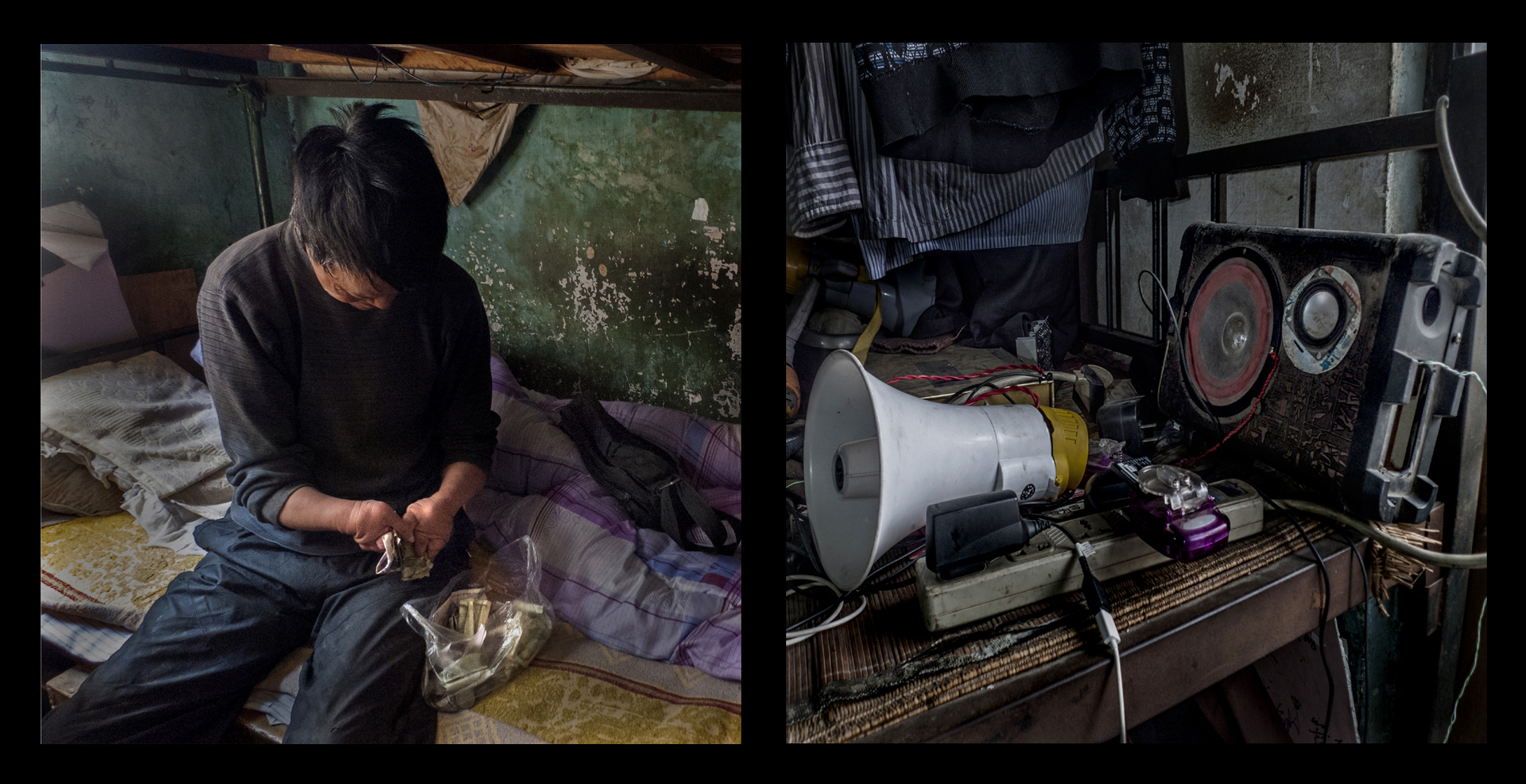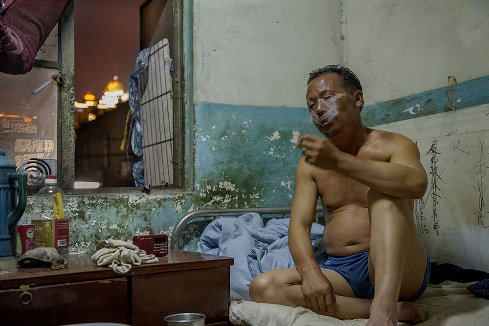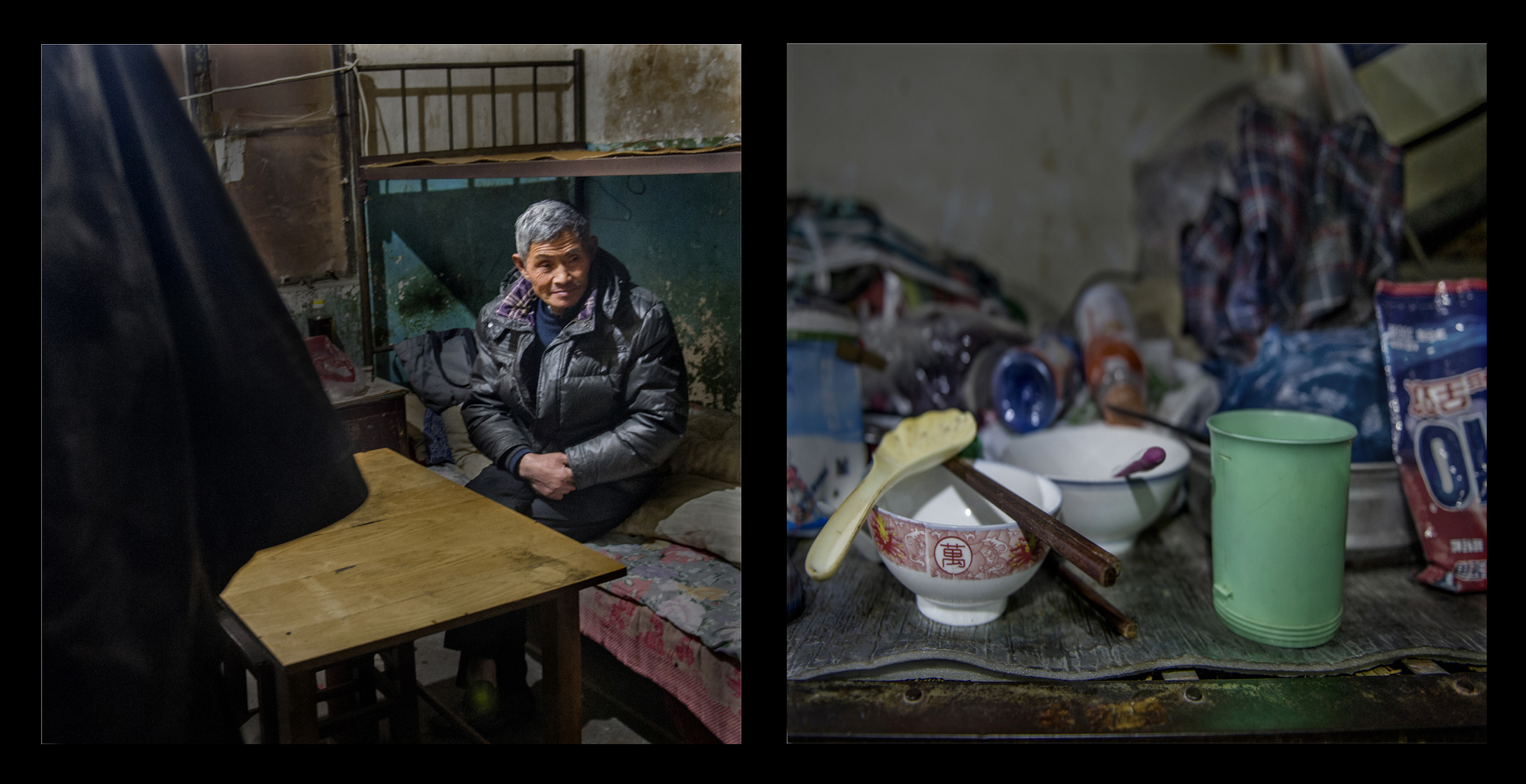 Beginning in 1981 when it opened its doors in the Chinese city of Wuxi in Jiangsu province, the Big Paddy’s Edge Inn attracted some of the city’s most colorful characters. The inn’s proprietor, Gu Qimei, charged a rock-bottom nightly fee of 6 RMB—or less than U.S.$1—to her residents, who shared daily necessities like food and cooking fuel. In 2009, Jiang Rongfa began photographing the hotel and interviewing many of its residents. Last year, after 33 years of operation, the hotel was forced to close when Wuxi demolished it to clear the way for new development.