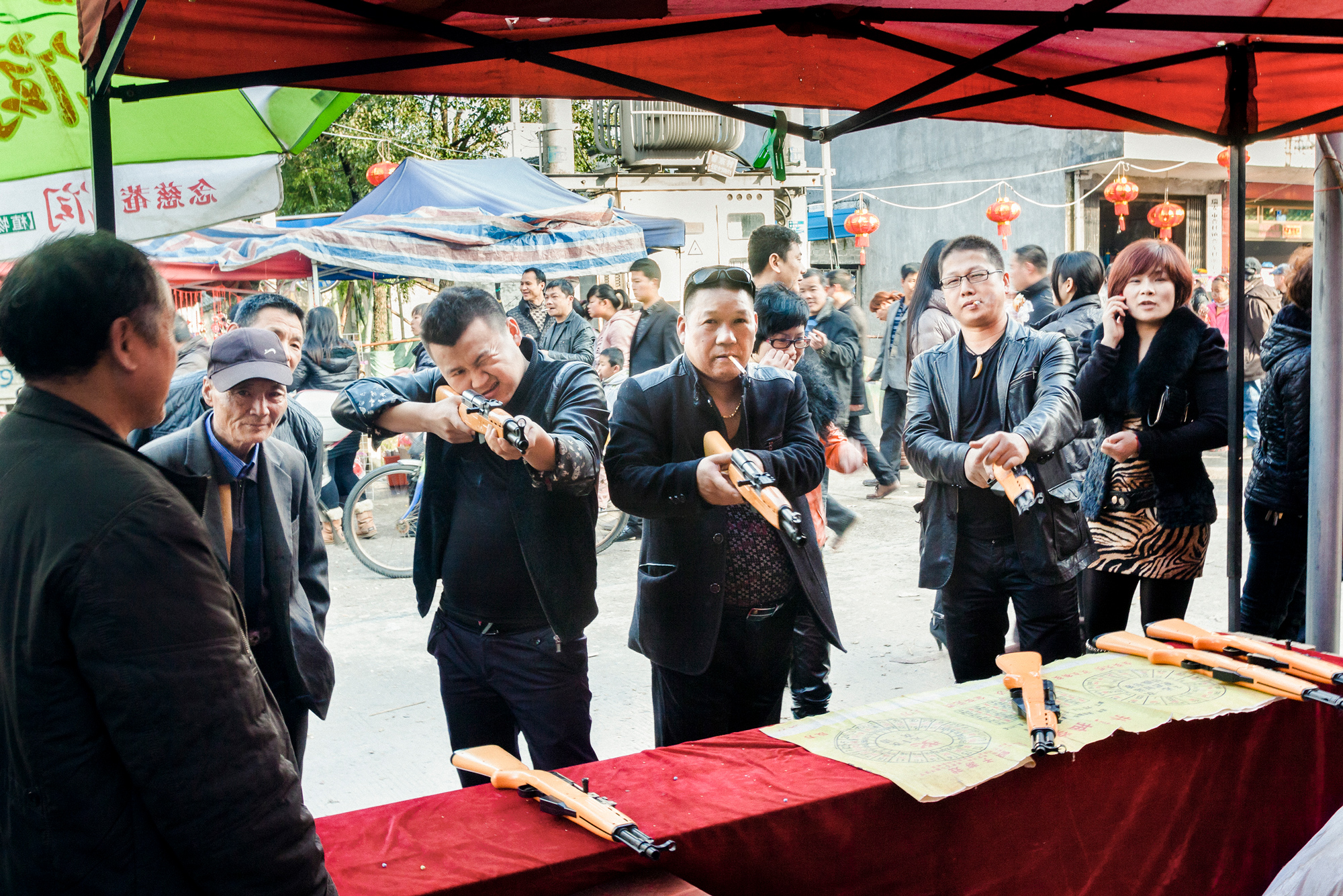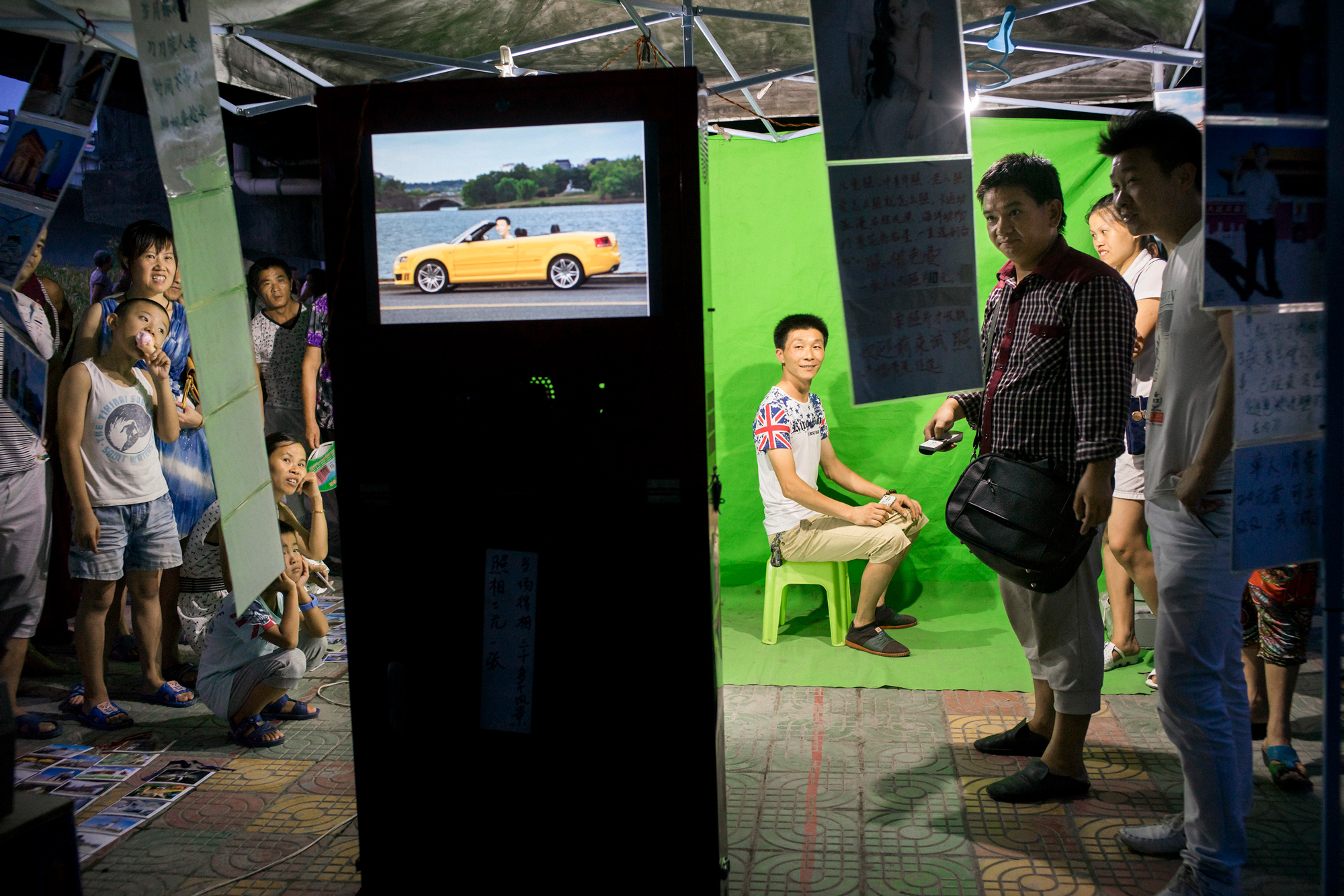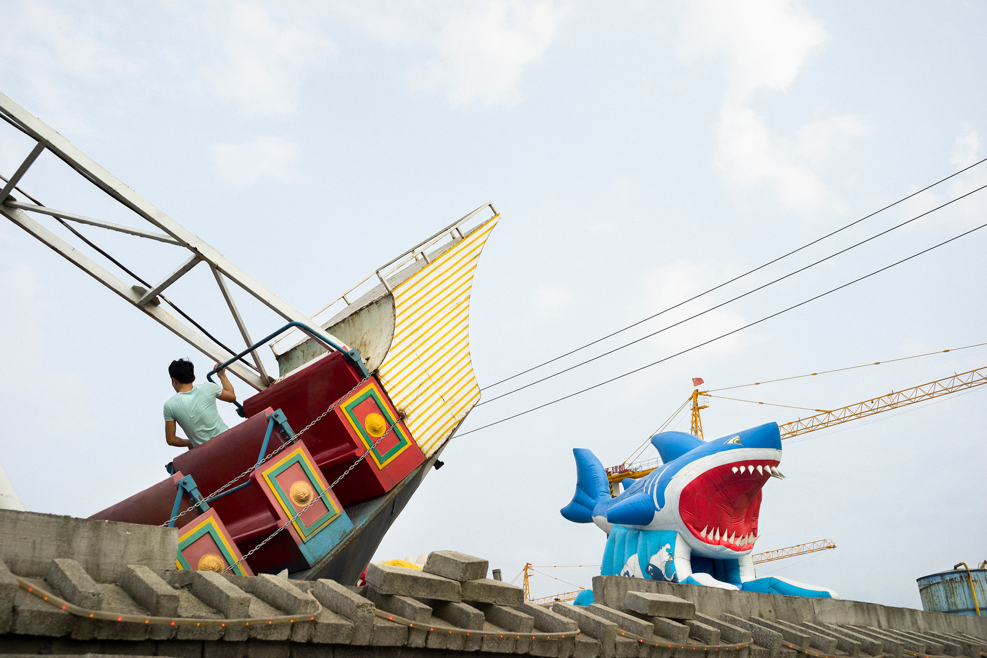 In 2009, he became interested in trying to depict the changes in his hometown, a place that was deeply familiar and yet had become alienating—a “non-urban non-rural hybrid” where consumerism was wiping out tradition. “The modern countryside is like a giant randomly assembled machine, overloaded and rattling wildly.” He found himself drawn to making images of recreation, the moments when, as he saw it, newly acquired wealth sated longstanding desires.