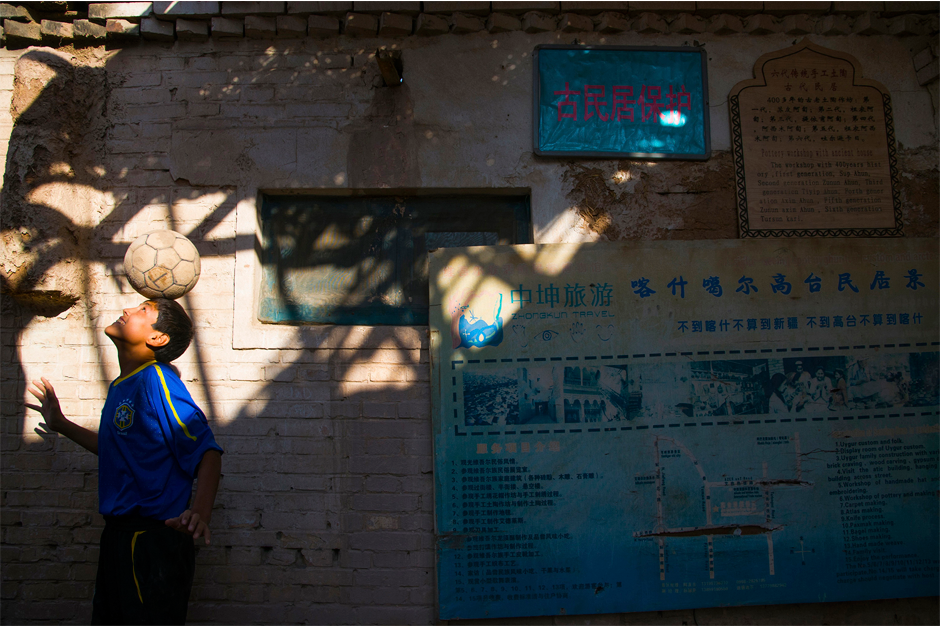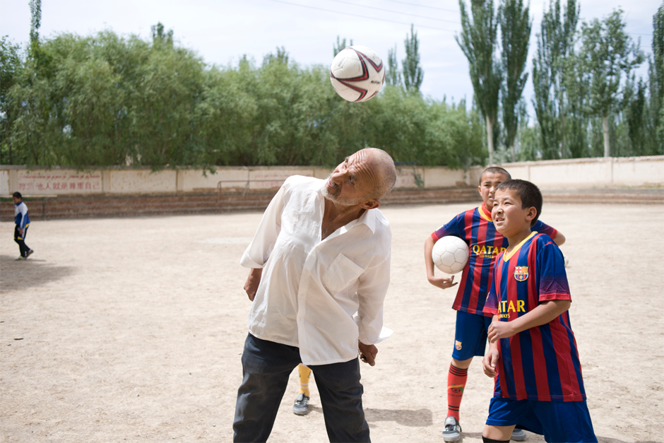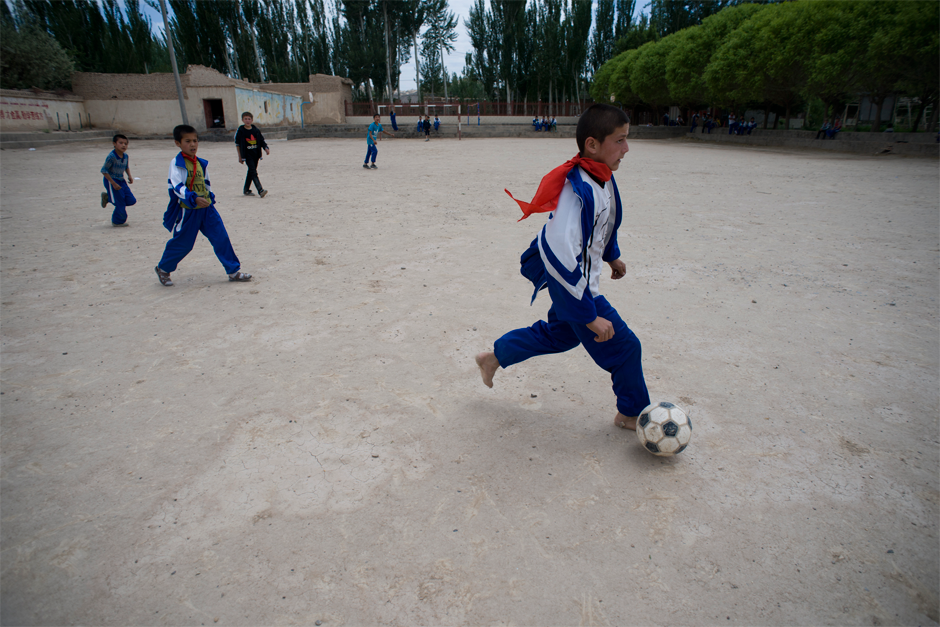 As the World Cup draws to a close, we present a photo essay by Chinese photographer Zhang Xinmin exploring the game of soccer along the Silk Road in Xinjiang, where it has a special place in Uighur education and culture. China’s forays into international soccer competition have been disappointing, at best. But, as Zhang explains below, a new generation of Uighur players traces its passion for the sport to forebears who played matches after evening prayers with hand-sewn sheepskin balls and, in celebrated contests in the 1920s, vanquished their European competitors. His photographs first appeared, last month, on the Chinese website Tencent. What follows are translated excerpts from Zhang’s introduction.