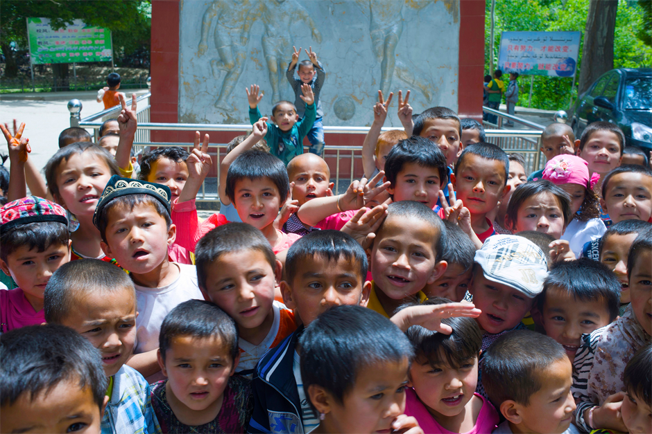 It’s a clear, sunny day in Iksak, a small town surrounded by orchards outside the city of Artux in Xinjiang Uighur Autonomous Region. Iksak Elementary School’s 389 students are finishing up lunch in the noisy cafeteria. Afterward, many rush excitedly to the soccer field, where boys and girls alike vie for the ball, kicking up dust beneath the blazing sun. During the 10-minute interval between classes, children play ping-pong near the front entrance and tootle on wind instruments in the hallways; a few girls shimmy to music blaring out of a CD player.