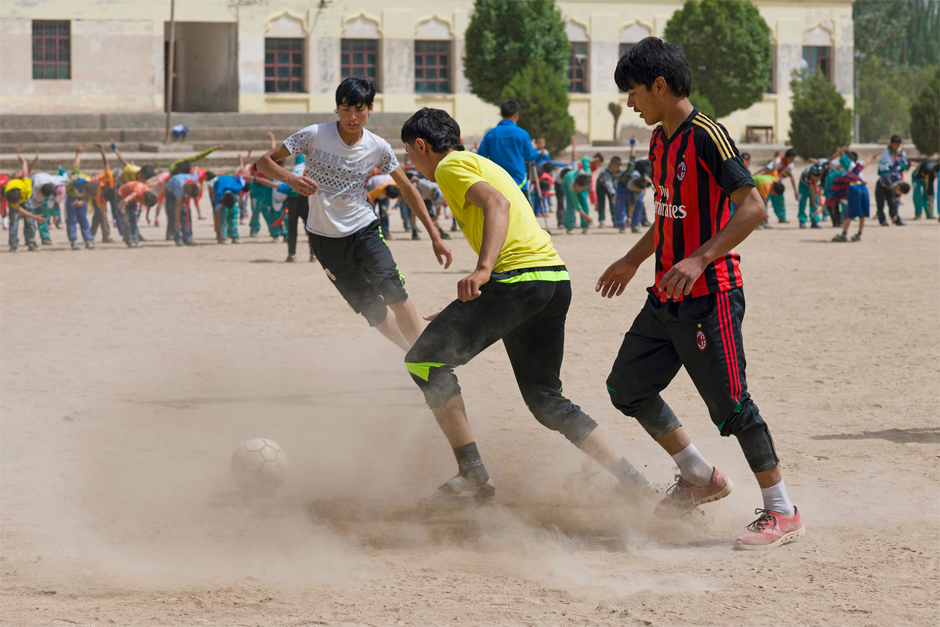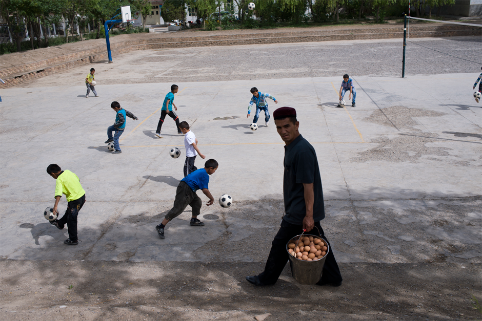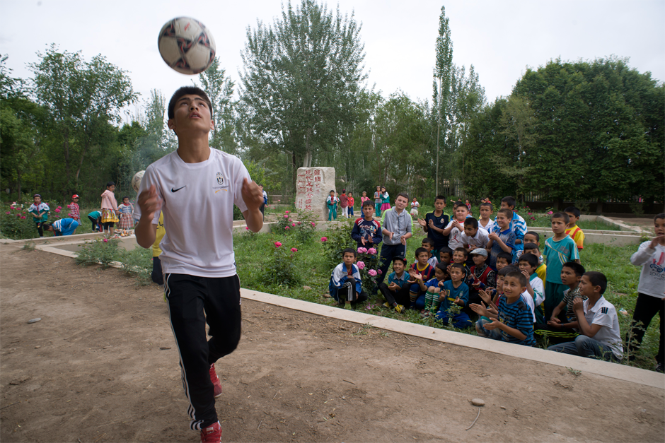 The kids on the field might just look like they’re blowing off steam. But there is a unique educational tradition here in the Uighur-majority prefecture of Kizilsu, Xinjiang—and soccer plays a central role in it. For the residents of Artux, Kizilsu’s crowded border city and once a key stopover on the Silk Road, trade and travel have always been an important part of life. During their travels, traders from Artux witnessed innovations in education and science abroad and began to found schools back home. In 1872 the brothers Hussein and Bawudun Musabayov devised a new curriculum for the madrassas of nearby Iksak, one that merged religious and scientific education. Soon, they sent observers to Europe to study soccer, and the sport became a requirement at their schools. In 1885, in a break with the conservative Islamic establishment, they founded a school focused on modern science, offered free education, and hired foreign instructors to teach subjects including medicine, fine arts, accounting, and Russian. The school featured a state-of-the-art soccer field. Graduates of its teacher-training program went on to teach throughout Xinjiang.