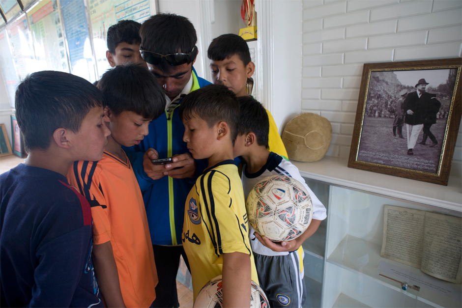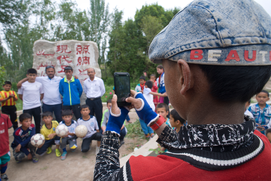 Today soccer remains a part of the curriculum at Kizilsu’s Third Elementary School. Every day, Coach Nasrulla Mijit oversees three teams as they practice on the school’s concrete soccer pitch. Nine of his students have gone on to the prestigious Evergrande Football School in Guangdong province, and five of them are champion players. His former student Imran, who was accepted to the Evergrande school two years ago and is now going on 15, recently spent a month in Italy training with the football club Juventus and will likely compete in the National Games in Guangdong three years from now. On a trip back to Kizilsu to visit his father, who is recovering from heart surgery, Imran brought Nasrulla, his former coach, the autographs of several famous Italian soccer players and accompanied him on a tour of village elementary schools to talk to the young students. Imran was particularly moved when they arrived in the village of Iksak, where the local elementary school is home to a small stone monument that reads: “Birthplace of Modern Soccer on the Silk Road.”