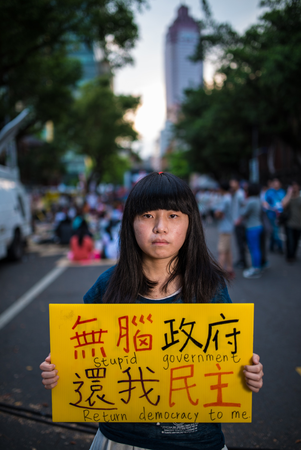 Following are portraits and interviews of members of the Sunflower Student Movement, photographed over the past two weeks by Taiwanese-American photojournalist Chien-min Chung. Interviewed by Pam Chen, the subjects of the photographs asked to remain anonymous.