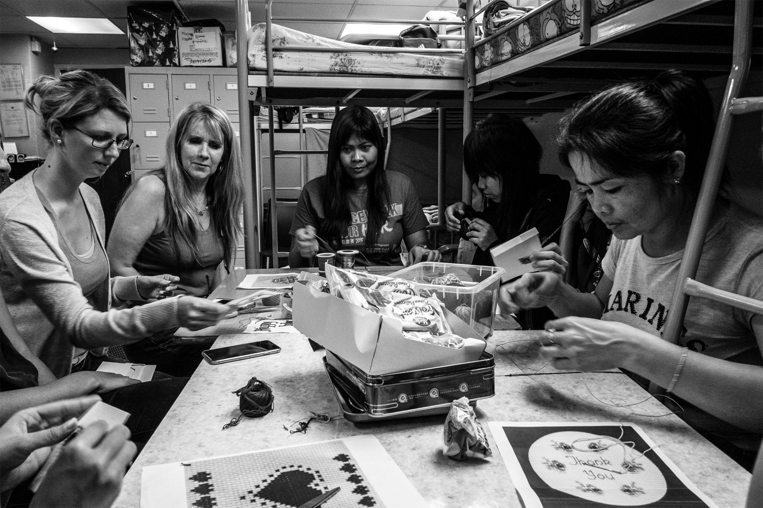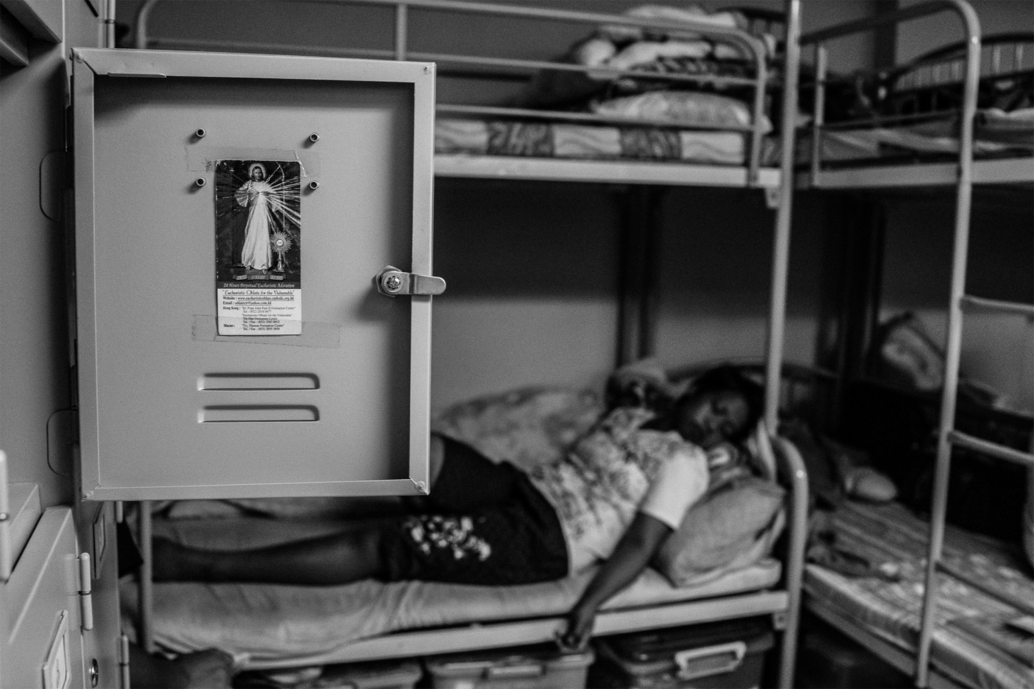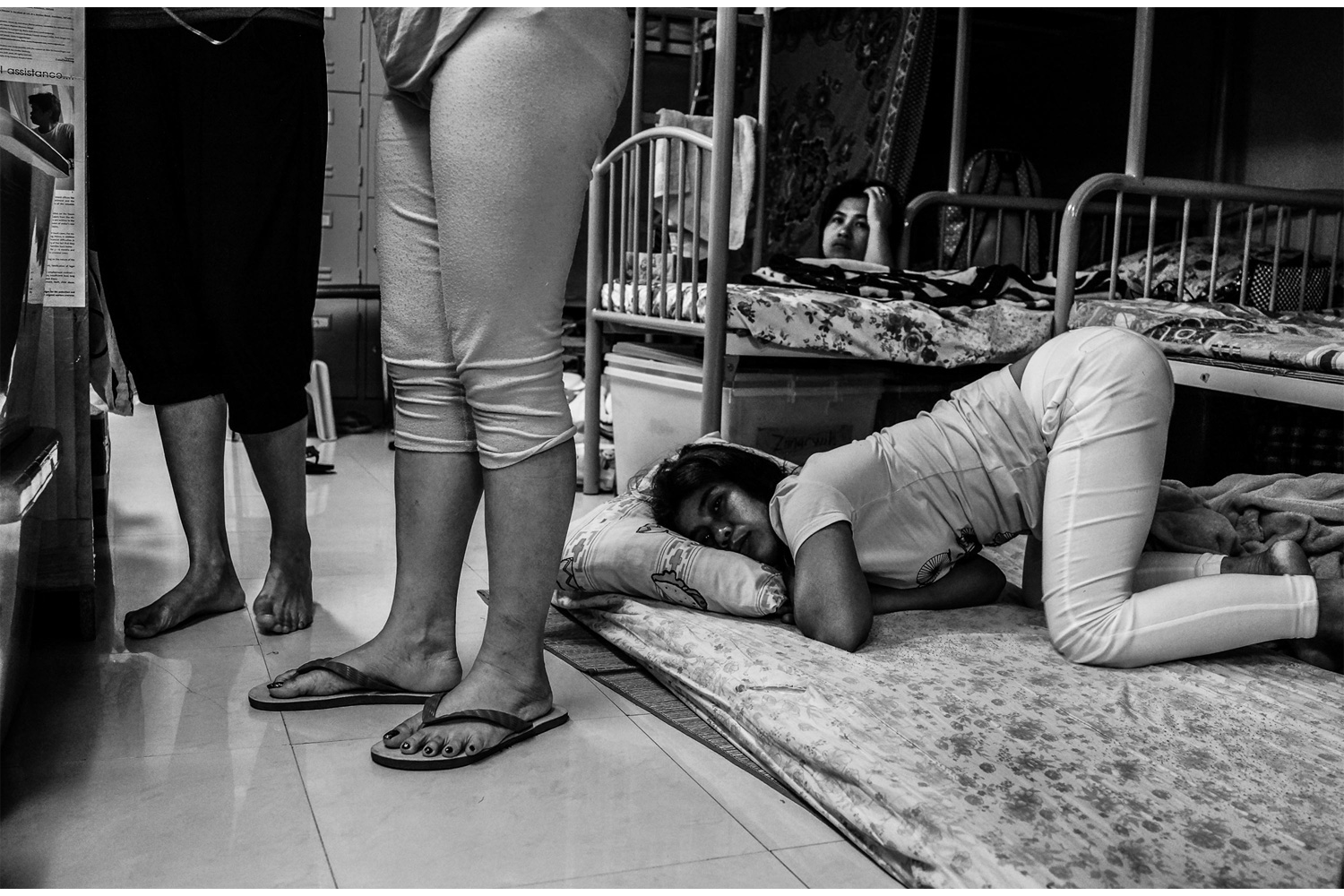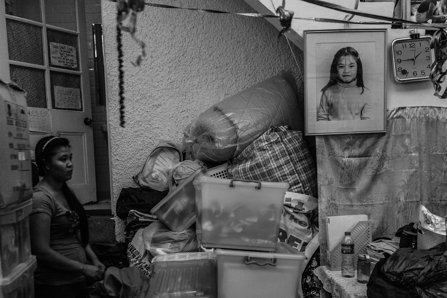 A superficially stupid comment, a harebrained remark, a look askance on Sundays and public holidays in Central and Causeway Bay, as people walk next to the huge public gatherings of Hong Kong’s “helpers” on their day off: all small marks of the conflicted relationship that Hong Kong has with the foreign domestic workers who have become indispensable to the city’s functioning. Thousands of women sitting in the streets or rehearsing dance routines—sometimes in colorful costumes, as if ready to go on stage, as in Xyza Bacani’s pictures—talking, eating, combing each other’s hair, conducting small business exchanges, exchanging information, painting their nails, packing huge quantities of stuff to send home: to the Philippines, to Indonesia, and further afield. In this territory of nearly 7.5 million people, as of December 2014, live more than 330,000 “foreign domestic helpers” who hail from the Philippines, Indonesia, Thailand, Nepal, and Sri Lanka. They have a minimum wage—but are only allowed to work in Hong Kong on contracts that bar them from gaining full residency, no matter how long they stay. They cannot apply for visas for their spouses or children, since the conditions of employment do not allow them to have “dependents”; should a family member also obtain a Hong Kong work visa, they cannot live as a family, as, by law, a foreign domestic helper must reside with her employer. And even if the rules require that the helpers have “suitable living accommodation with reasonable privacy,” in many cases the dismal size and condition of their actual quarters do not even cause a scandal anymore. Some sleep on mattresses on the floors of kitchen corridors, others in cupboards, some in the bathroom or with the children, others yet under makeshift canopies on tiny balconies.