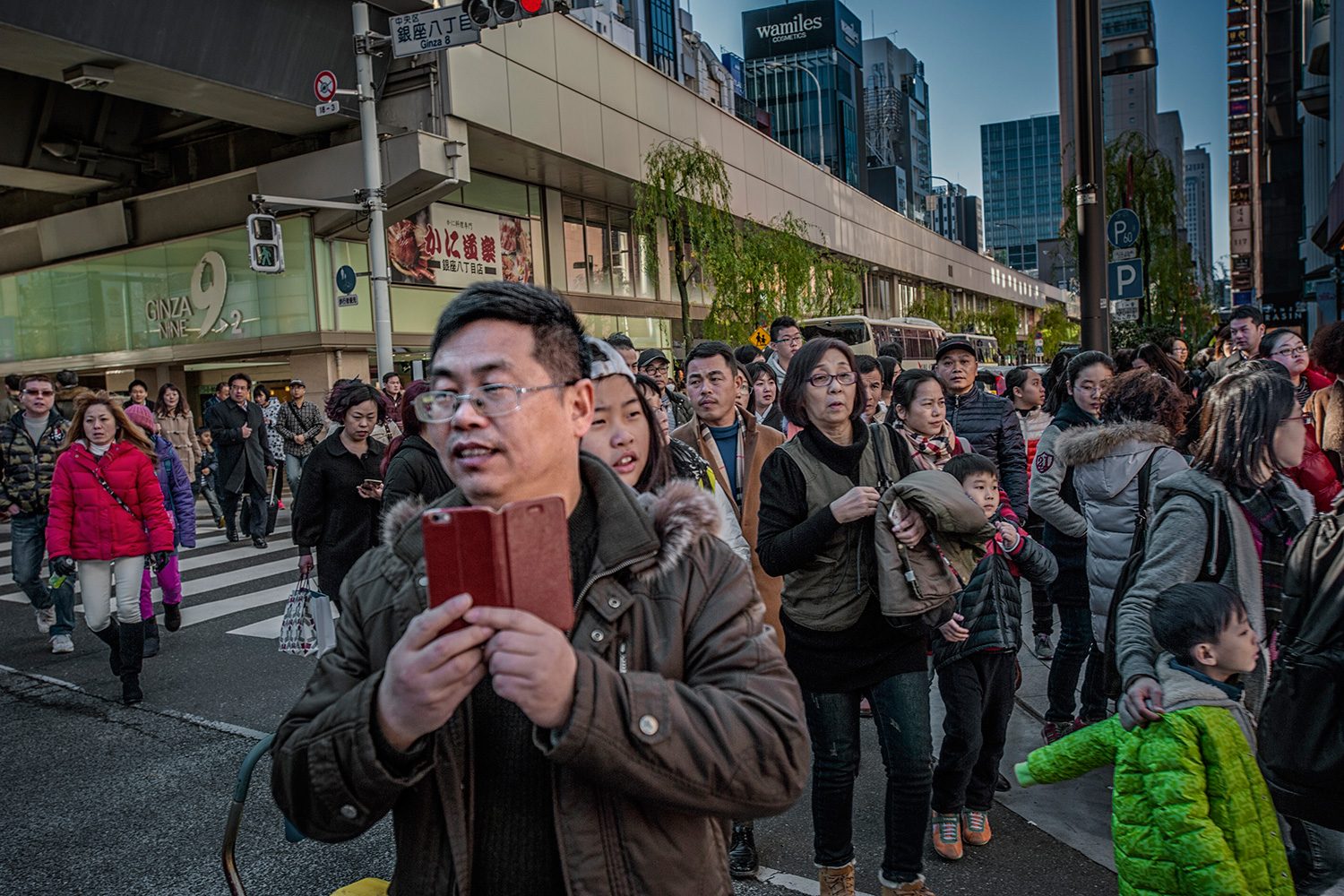 The Japanese term, a compound word made up of “explosion” (baku) and buying (gai), refers to the swarms of Chinese tourists who have descended on Japan in a consumerist frenzy documented by photographer James Whitlow Delano, a longtime Tokyo resident who has also traveled widely in China. Political tensions between the pair of nations—over wartime atrocities, uninhabited rocks, and trade imbalances—still fester. But East Asia’s two great powers have never been more economically intertwined. In 2015, Japan issued 3.78 million visas to Chinese tourists, up 85 percent from the year before. Four out of five foreigners who visited Japan with visas last year were Chinese. A weaker yen helped, of course, as did pollution and consumer-safety scandals in China that made Japan’s manicured confines seem all the more attractive.