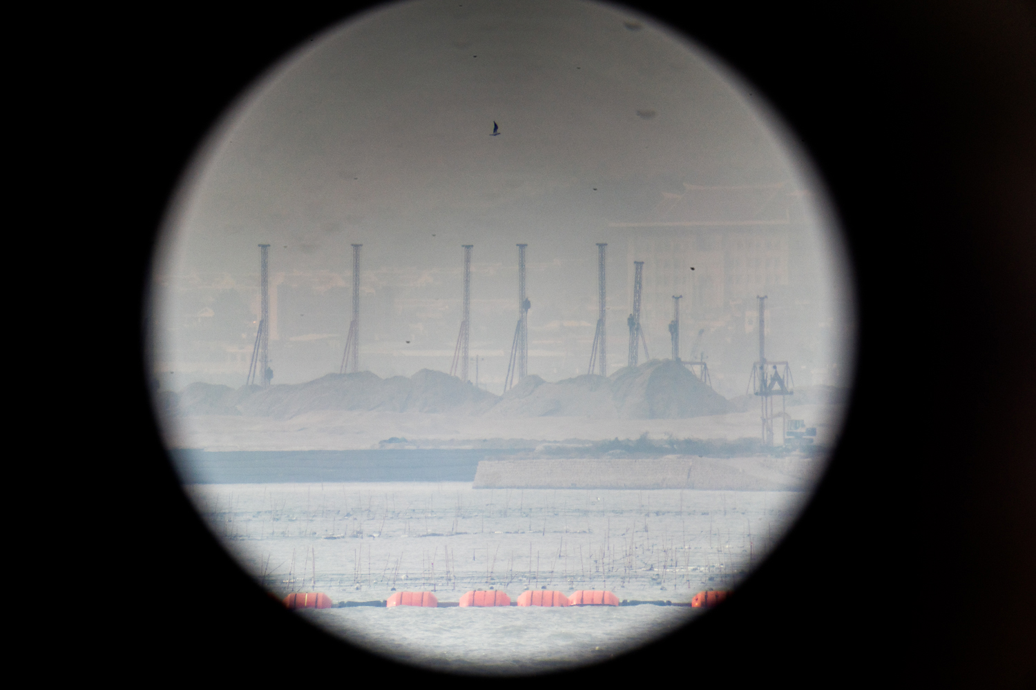 Syril Hung sighs, awe-struck by this scene. The retired editor is looking through a pair of binoculars from the Mashan Observation Station on Kinmen, a nearby island that belongs to Taiwan. On a clear day like this, we can see sand-dredging barges working non-stop in the two-kilometer stretch of open water that separates the two former Cold War rivals.
