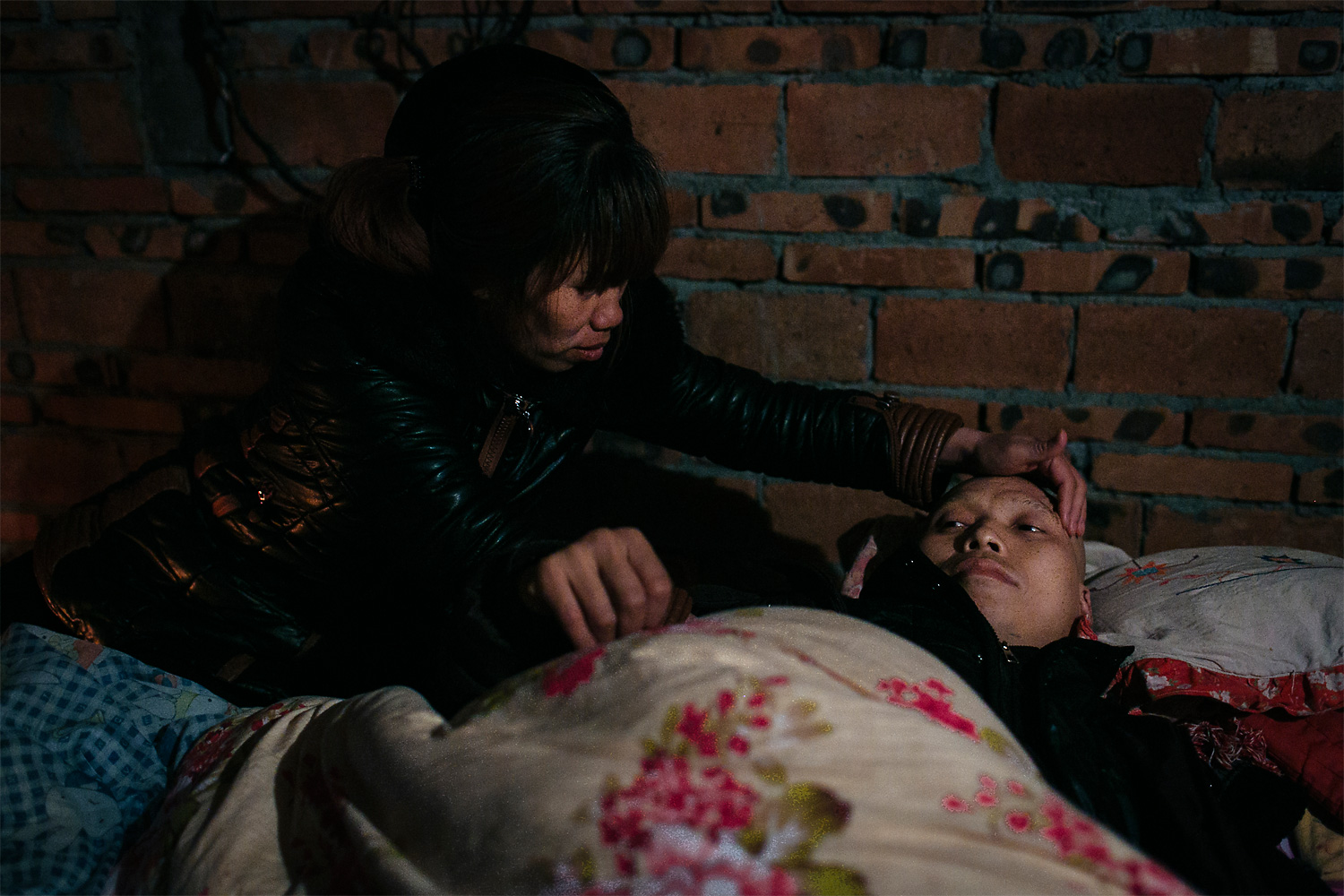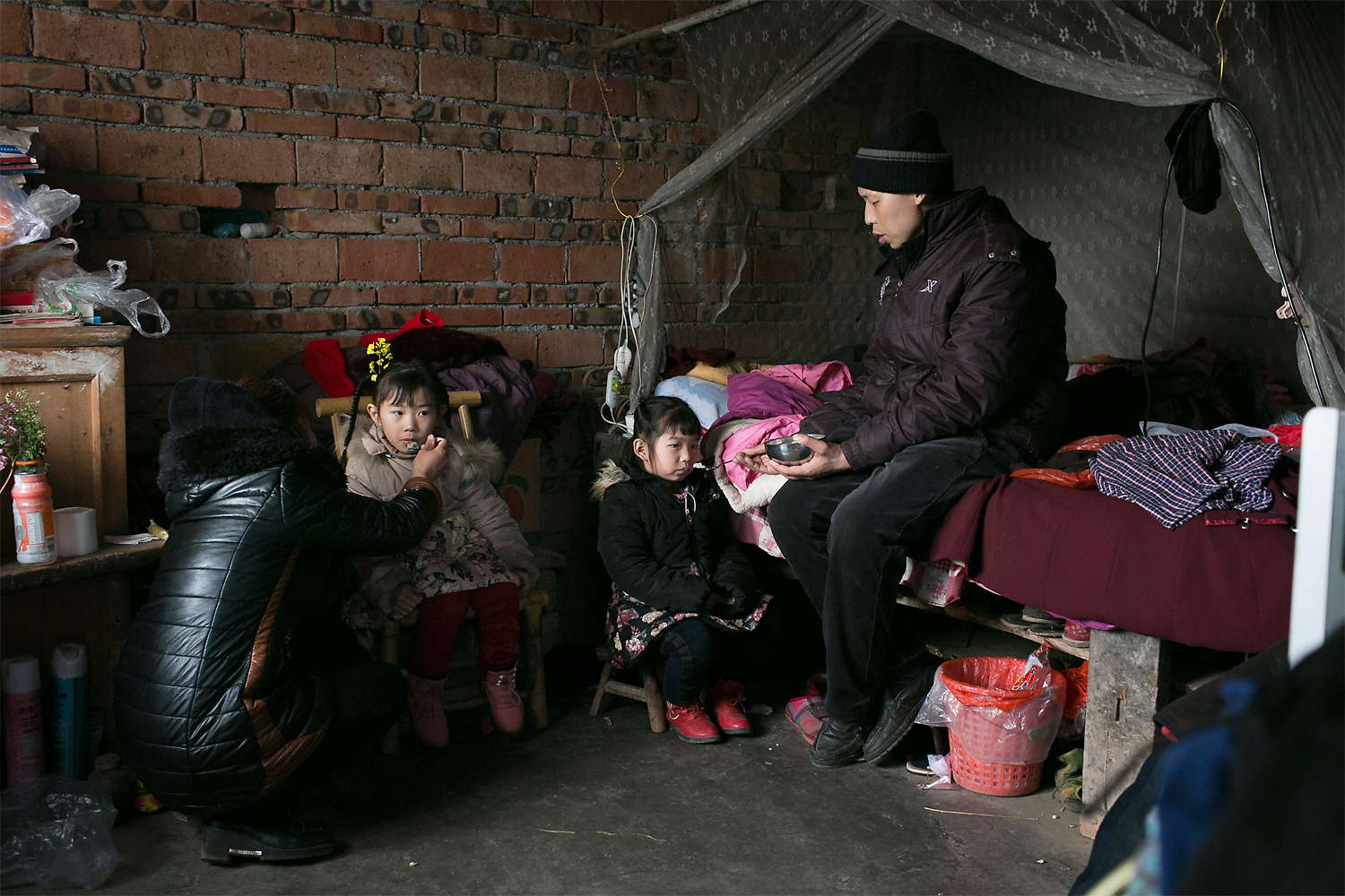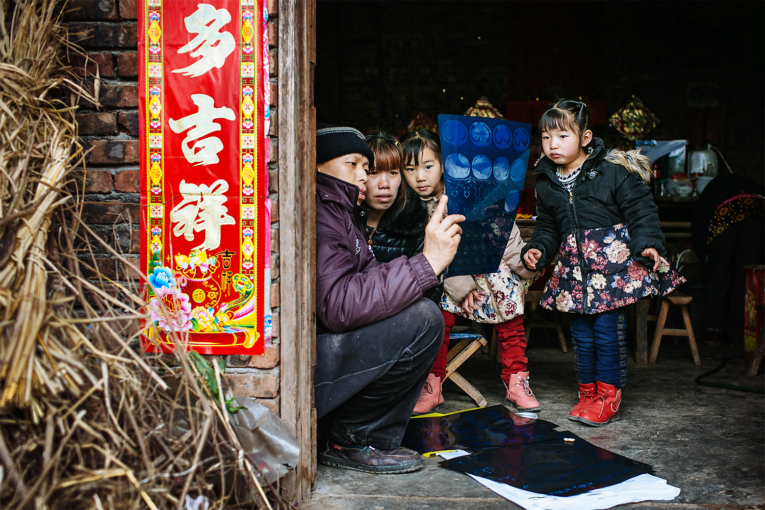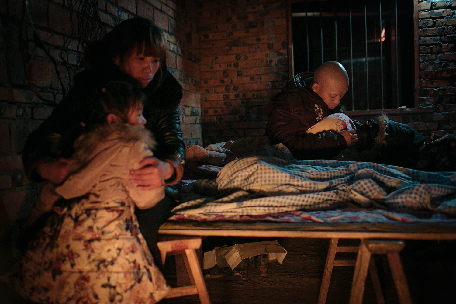 Li Mingjin, a 38-year-old coal miner, worked hard and was the sole breadwinner for his family. For 19 years, he toiled deep in the belly of the earth beneath Shanxi province. But in November 2014, by the time he was diagnosed with lung cancer, he was too sick to continue working. His wife, Ning Xianfang, was left to care for him and their two daughters, six-year-old Siyao and four-year-old Mengmeng. Without his employment or any form of health insurance (they had opted not to buy insurance from the government), the family’s economic situation quickly became dire. While working as a staff photographer for Tencent, I spent four days with Mingjin and his family and worried for what was in store for them, and we continued to be in touch thereafter.