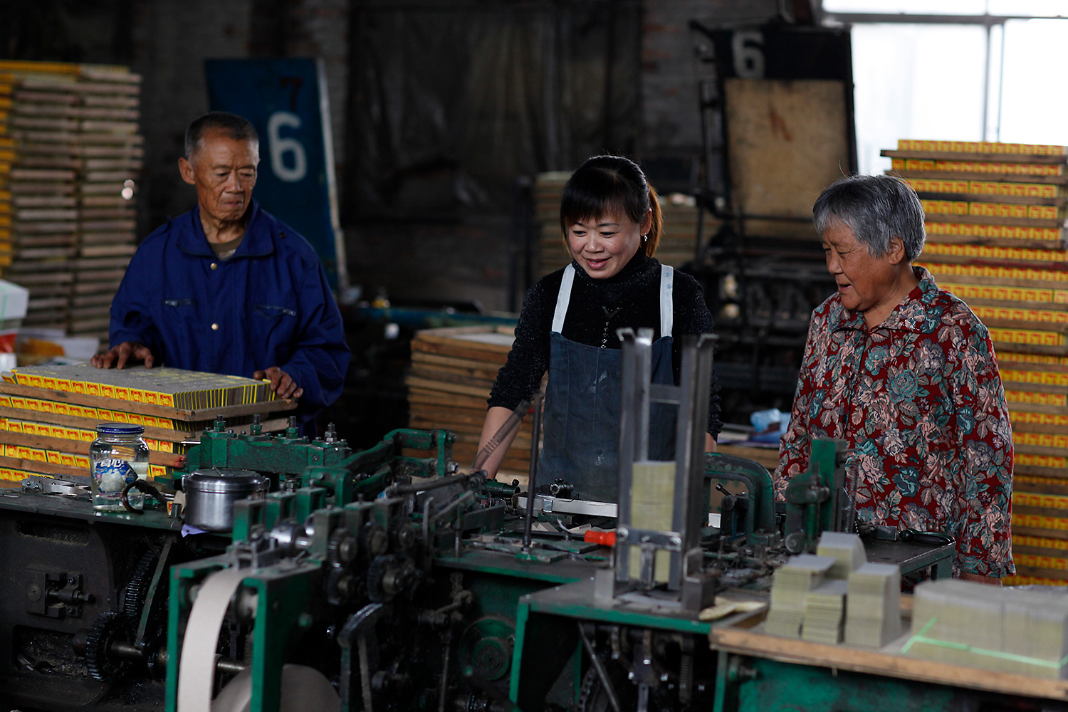 From the day Lu Guangshun began working in the match factory in March 1968, his job was the envy of others in town. Now 73 years old, he still remembers the factory’s heyday, from 1987 to 1997. Eight people from his wife’s family worked there, and his 47-year-old daughter Lu Ying still has a job as a machine operator.