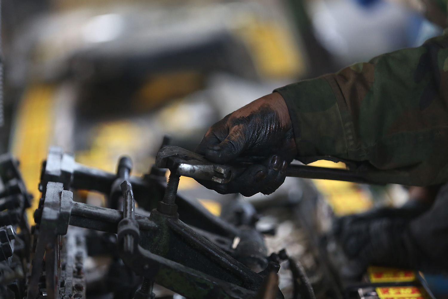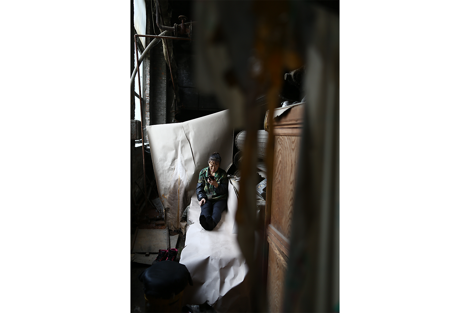 Fifty-one-year-old Chu Jumei entered the factory in 1995, when she married her husband who was already working there. Together they made a decent living. Now, her husband works as a security guard in town, and their life has changed completely. She is still “holding down the fort” at the factory.