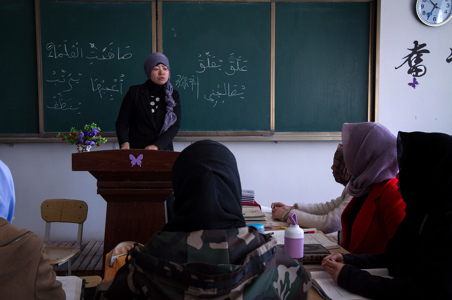Wang Lijuan leads an Arabic Intensive Reading class for second-year students at Ningxia International Language College.