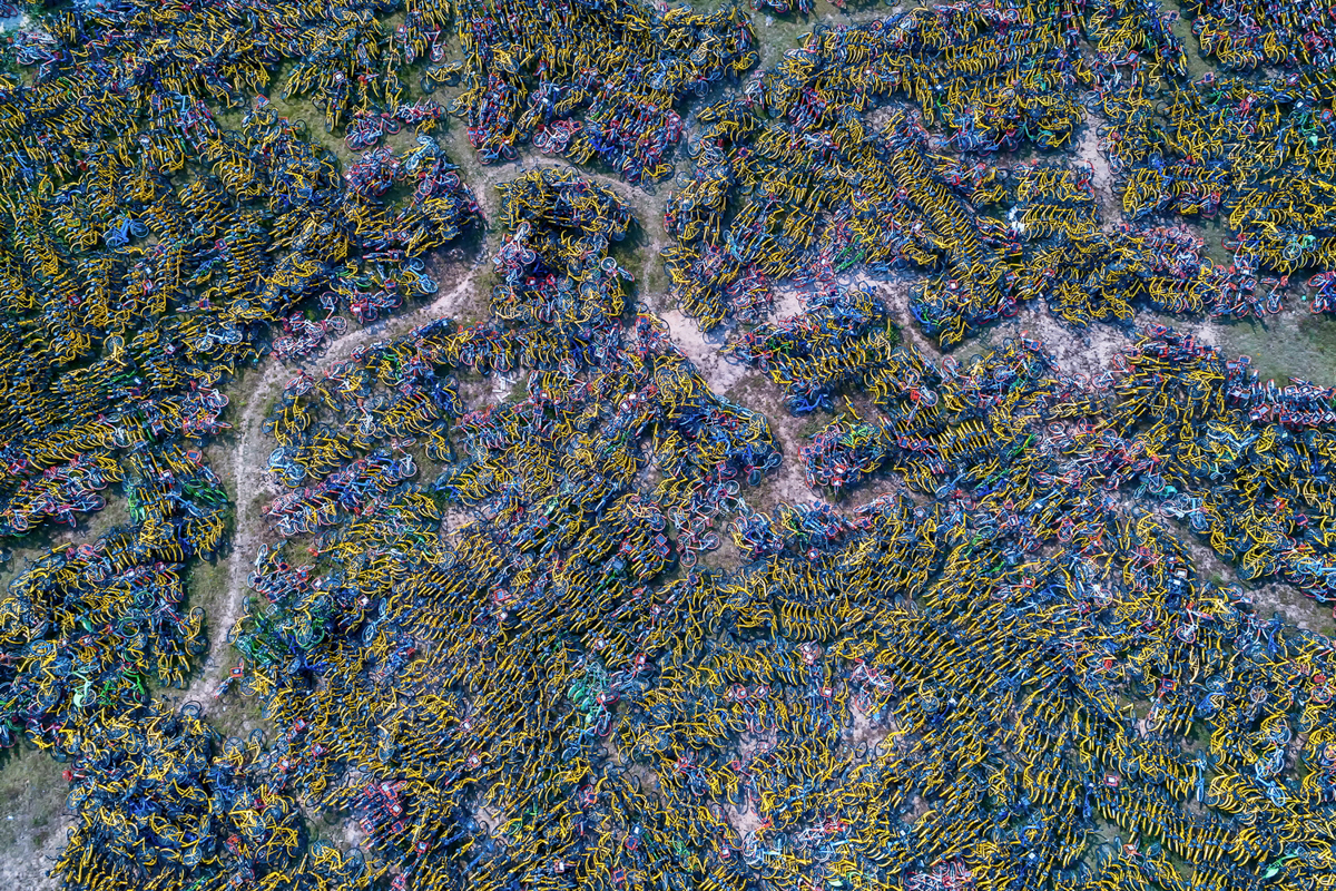 Forty years ago, China was a country on pedals: Roughly 60 percent of all trips were made on a bicycle. But as the economy blossomed, these two-wheelers, once considered status symbols, gave way to cars. Over the past couple years, however, some 60 companies have sprung up to give the tech-savvy, app-happy generation an easy way to get around: shared, dockless bikes. Fueled by venture capital, the companies have dumped more than 20 million cheap, brightly colored bikes onto Chinese streets. Many bikes now sit unused in vacant lots—also called bike graveyards.
