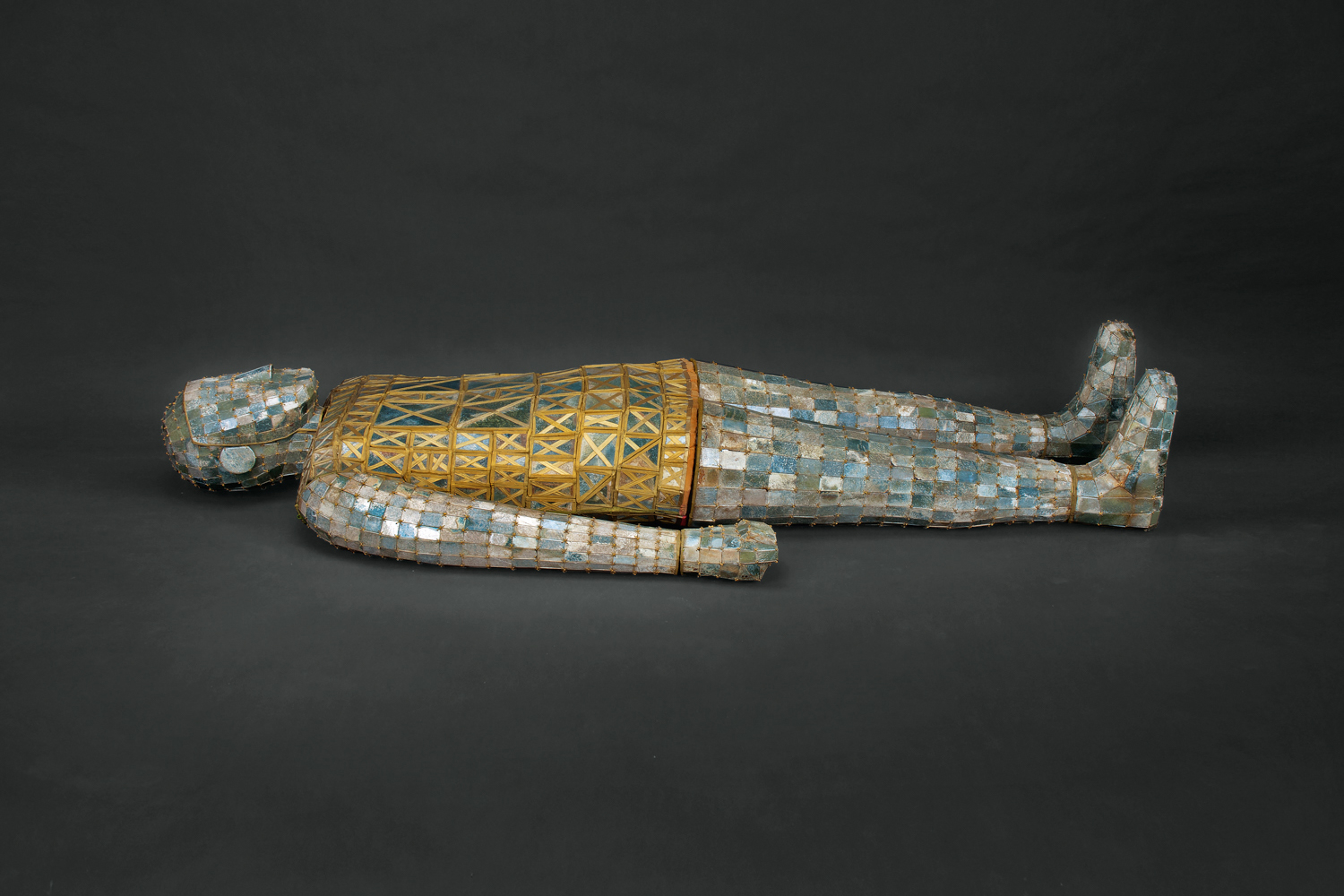 ‘Burial Suit of Dou Wan,’ Western Han dynasty (206 B.C.-A.D. 9), jade (nephrite) with gold wire, L. 67¾ in. (172 cm). Excavated in 1968, tomb no. 2 (Dou Wan), Mancheng, Hebei Province. Hebei Provincial Museum, Shijiazhuang; on view at the Metropolitan Museum of Art in the exhibition ‘Age of Empires: Art of the Qin and Han Dynasties’ through July 16.