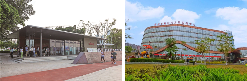 The Haizhu District Pazhou New Era Civilization Practice Station, posted on October 27, 2021 (left) and the Wuzhou City New Era Civilization Practice Center, posted on June 24, 2021.