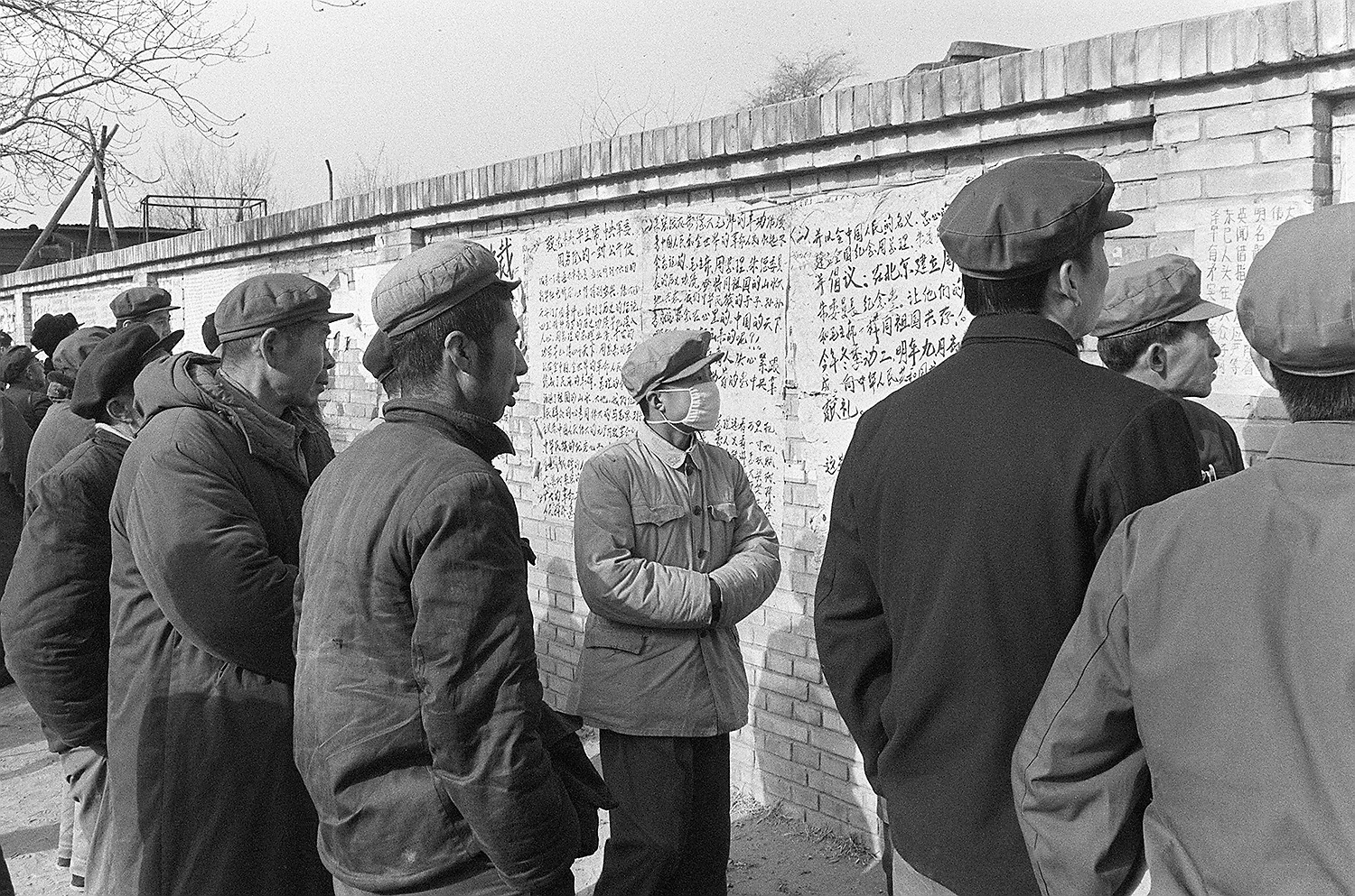 People read posters hanging on the famous ‘Democracy Wall’ on Chang’an Avenue in Beijing that called into question items of the Central Committee agenda at the time, December 5, 1978.