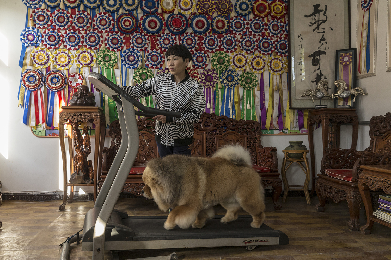 Pet pampering in China is on the rise as people pour more of themselves into strengthening their relationships with their four-legged friends. Wu Jiaxiang traveled around Beijing capturing many of the perks of pets who have landed in the lap of luxury, including gourmet meals and tailored exercise routines. In the photo above, breeder Yang Ling shows one of her many prize-winning chow chows. Together, they’ve accrued three homes in Beijing. But she tells her son not to think about living in any of them: they are for her dogs.