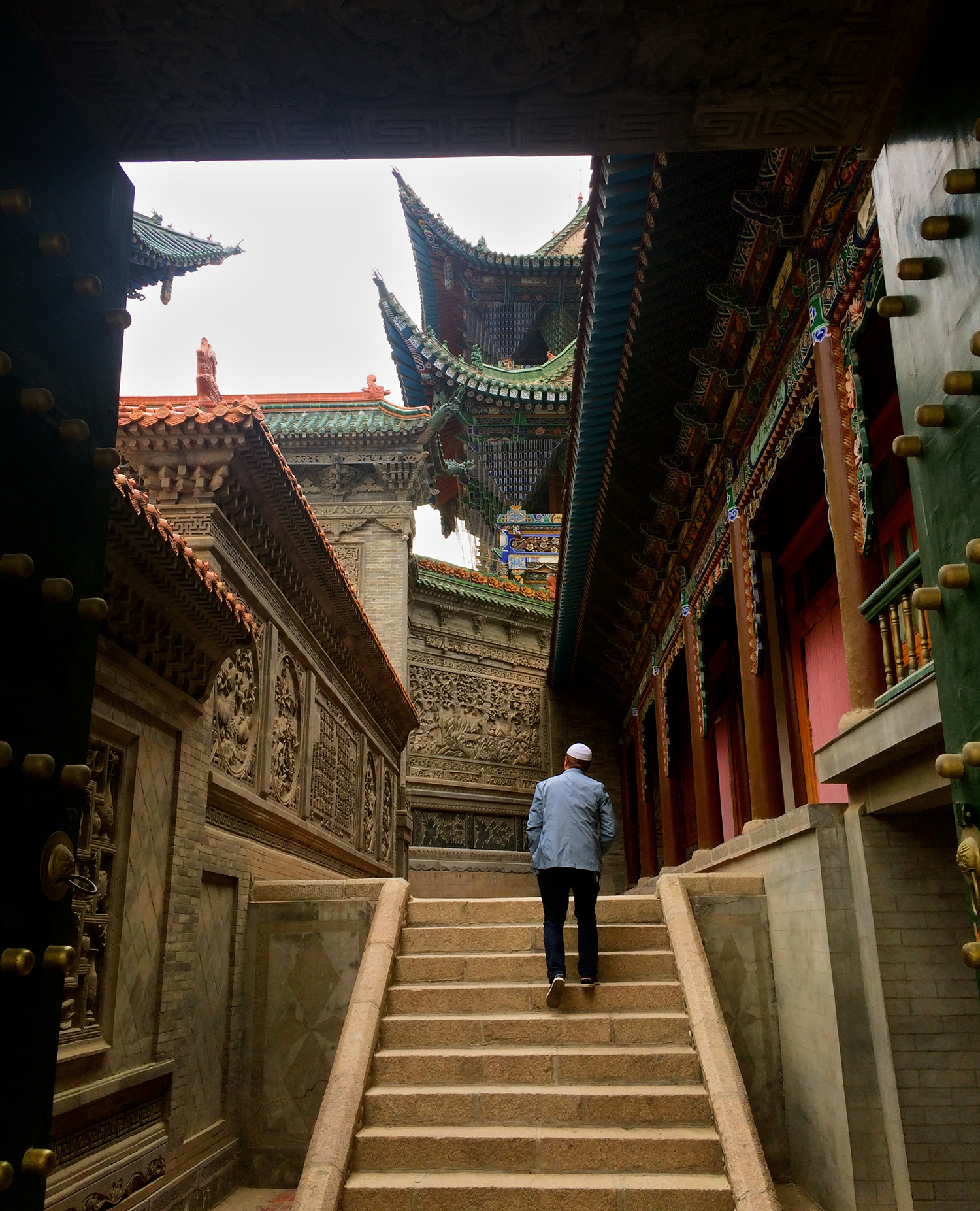 A Hui man walks into one of the largest Sufi mosques in Lanzhou.