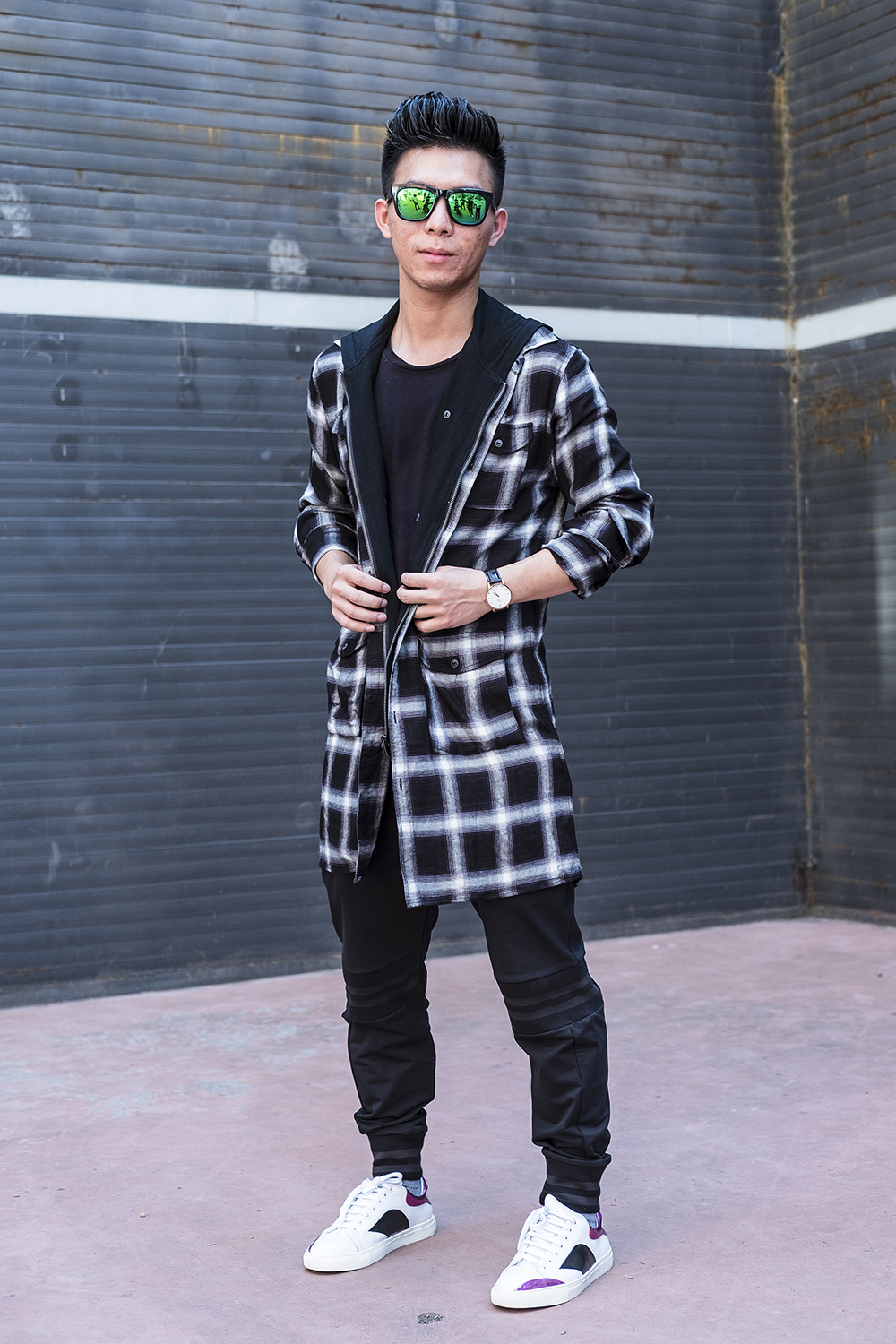 Michael, an engineer from Zhuhai, Guangdong province, poses for new profile photos in newly bought clothing, October 2, 2016.