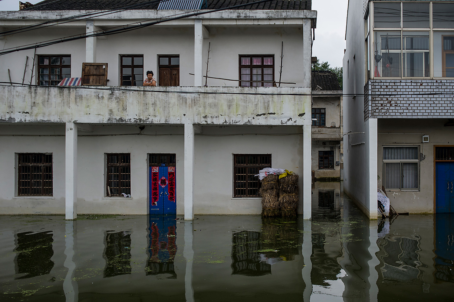 By the time the July floods began to recede, the vast majority of journalists already had left the affected areas. Photographer Li Junhui bucked the trend: He stayed behind in Yixing city, Jiangsu province, and visited three townships badly hit by the flood. Geese farming and crab farming are common in this area, but most of the animals didn’t survive, causing great loss to the villagers. The waterscapes in Li’s photos show an otherworldly reality.