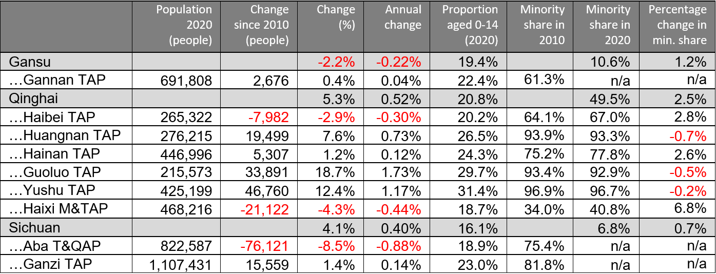 Table 2: Selected Population Data from the Nine Tibetan Autonomous Prefectures outside the Tibet Autonomous Region (TAR)