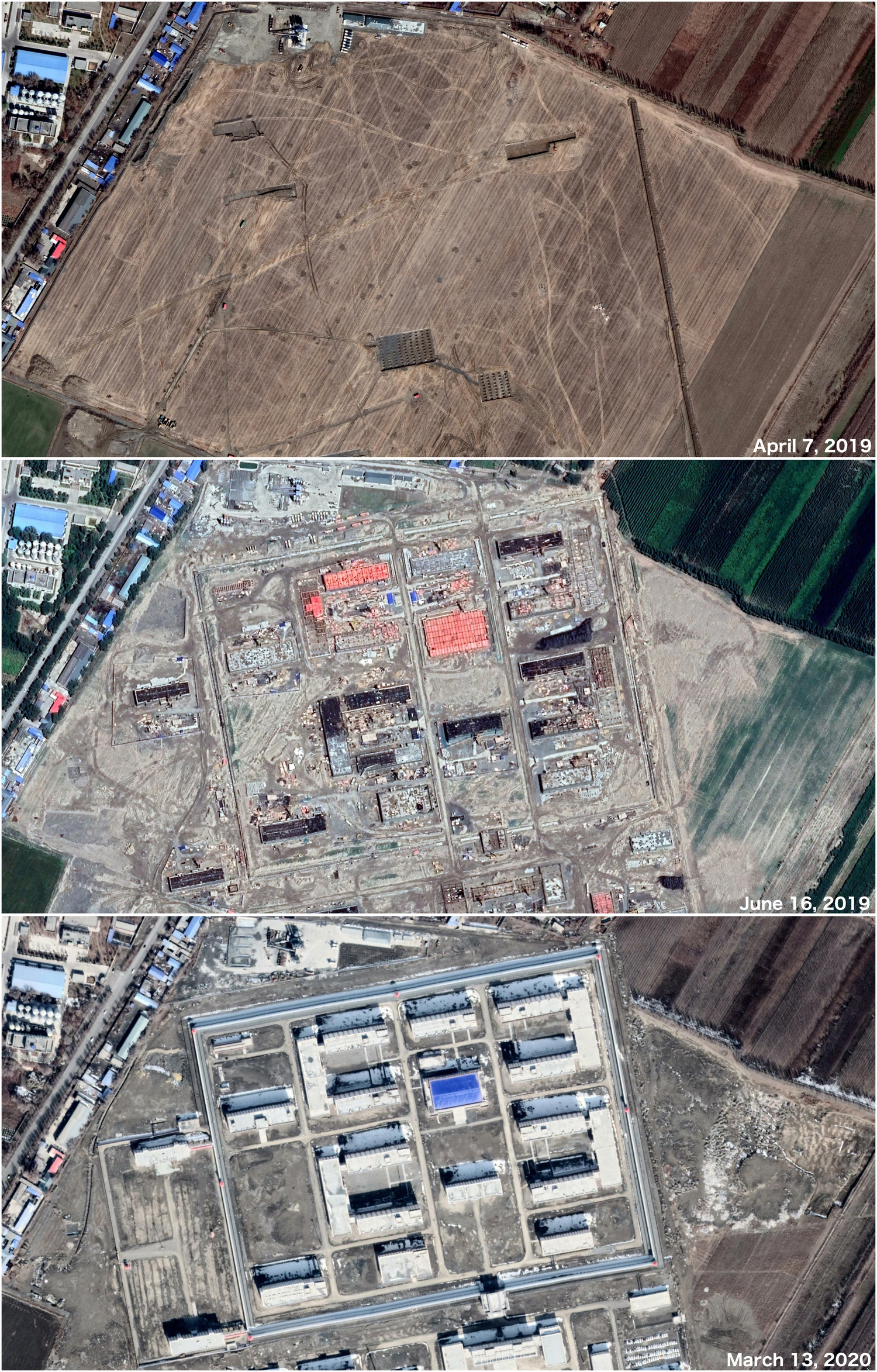 Images of what is likely a detention facility being built in Shawan county, accessed on Google Earth December 19, 2020.