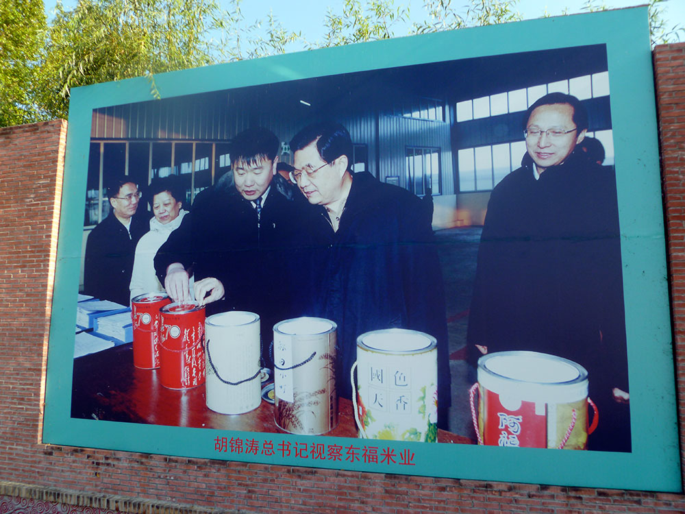 Then Chinese president Hu Jintao inspects the factory at Eastern Fortune Rice company on a visit to Da Huangdi (Wasteland) in 2007.